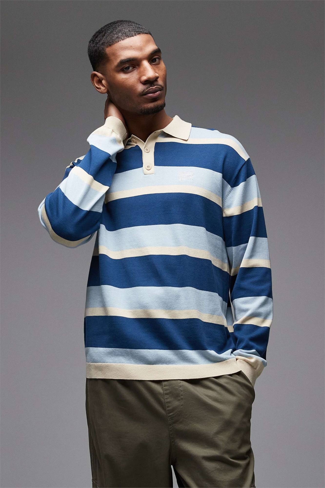 Трикотажная рубашка-поло с длинными рукавами и полосками