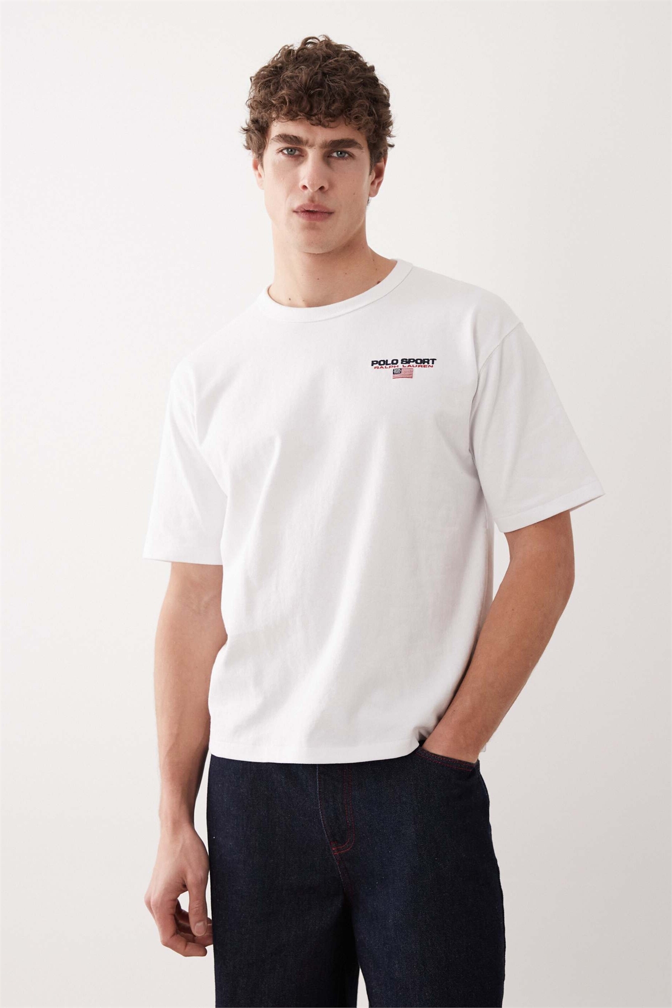 Футболка свободного кроя из плотной ткани с логотипом в виде небольшого спортивного флажка
