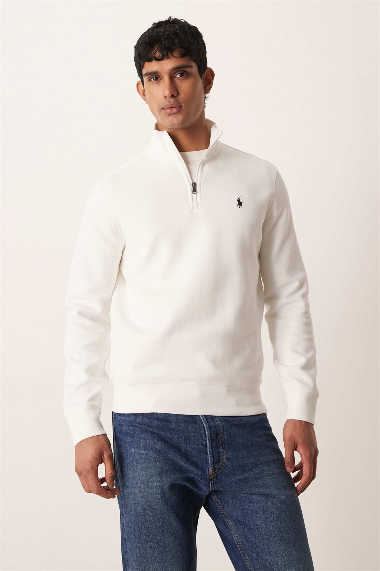 Свитшот с логотипом, из двойного трикотажа, с четвертью молнии