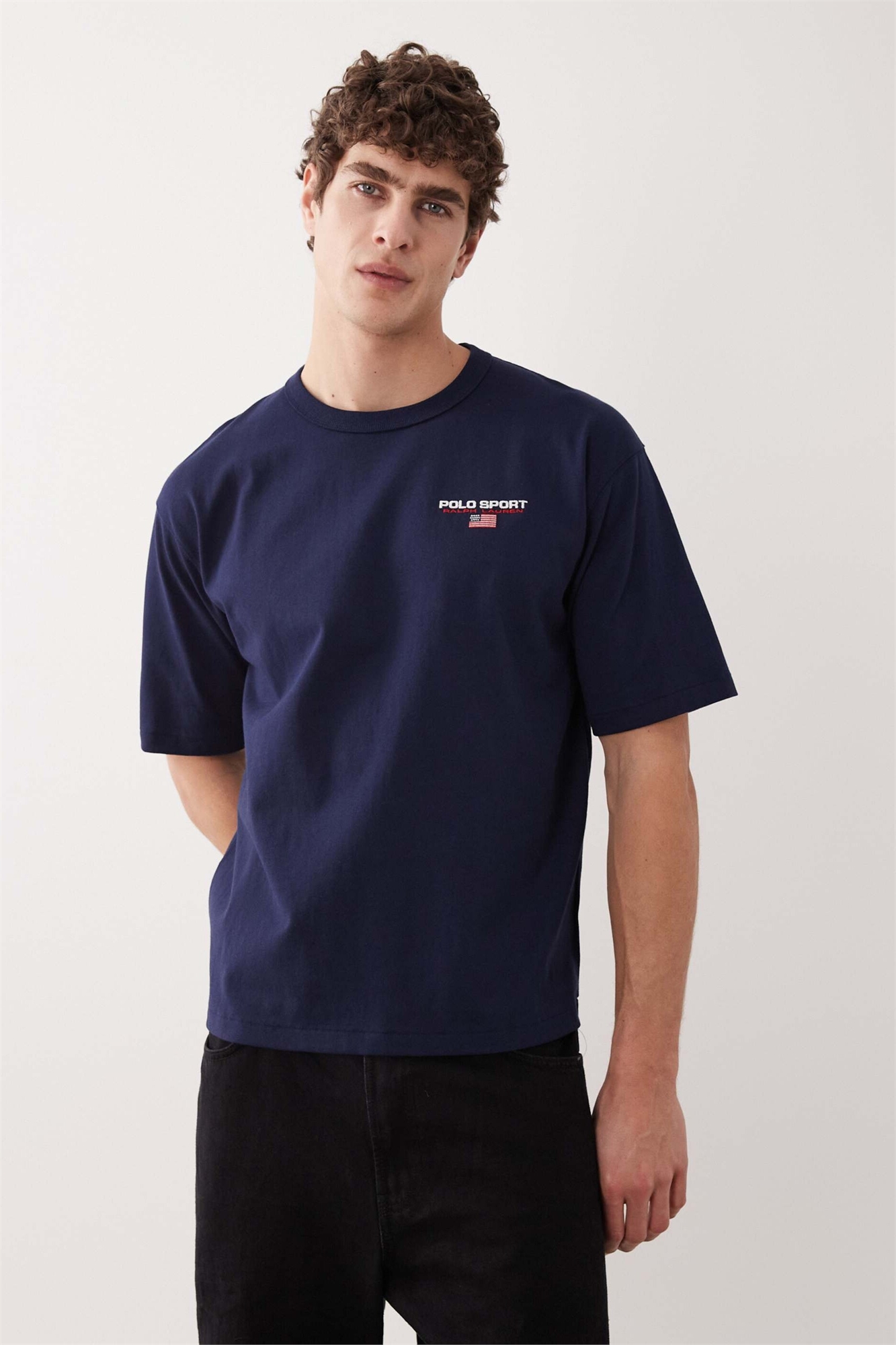 Футболка свободного кроя из плотной ткани с логотипом в виде небольшого спортивного флажка