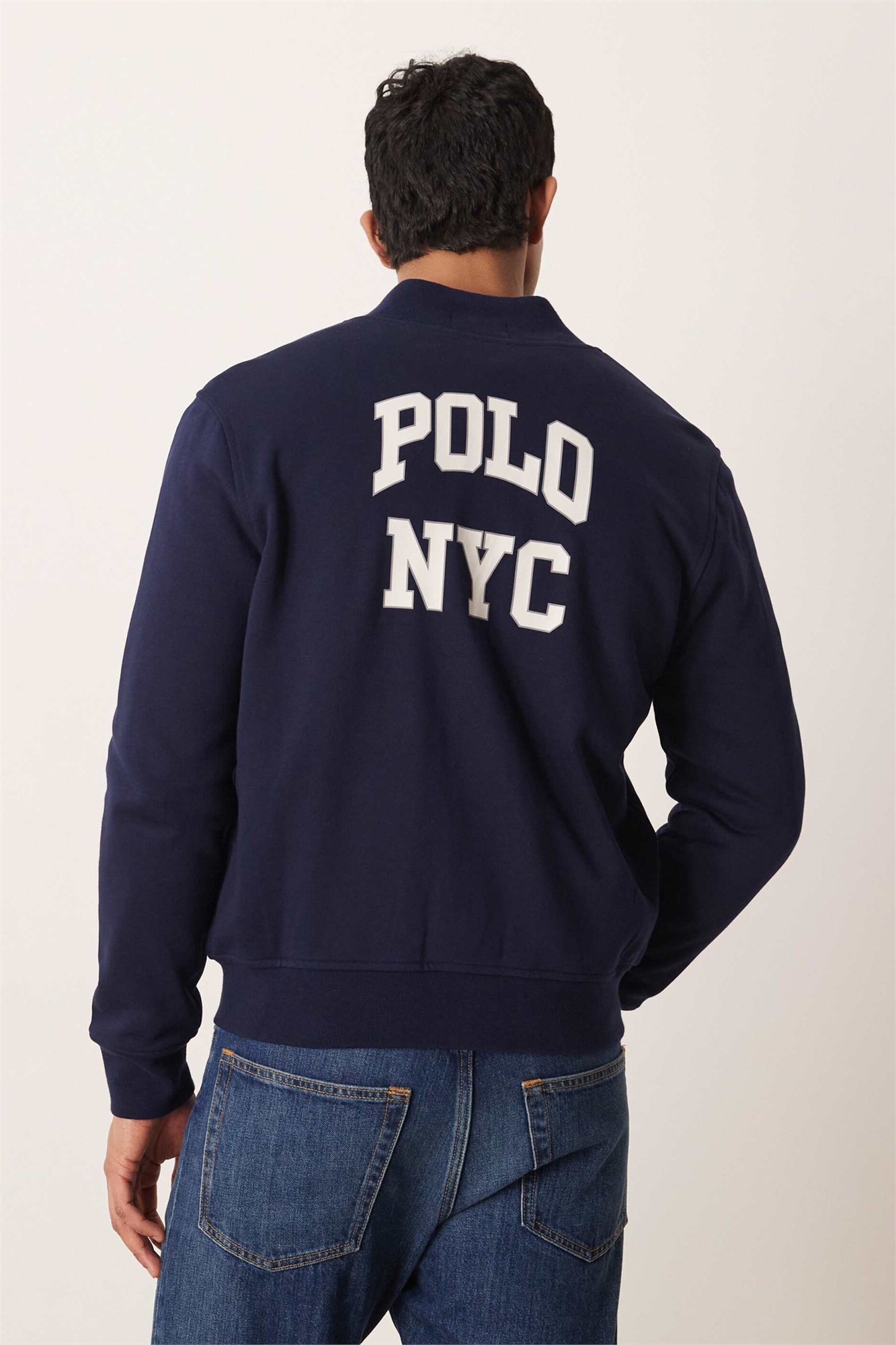 Университетская бомбер-куртка из джерси с принтом на спине и застежкой-молнией по всей длине