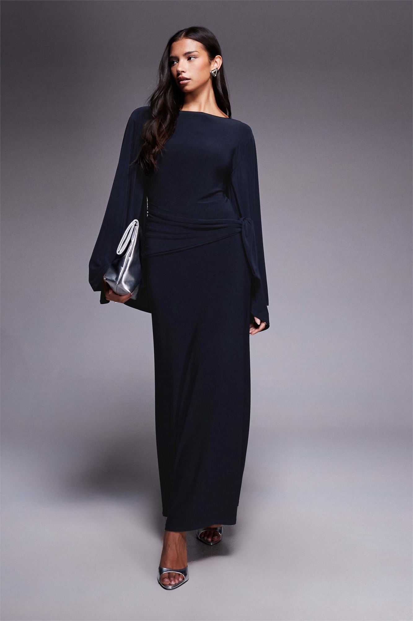 Макси-платье с завышенной талией и рукавами «летучая мышь»