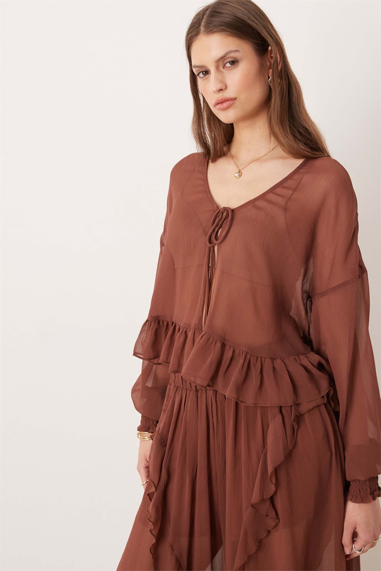 Блузка в стиле бохо с гофрированной тканью и завязками спереди