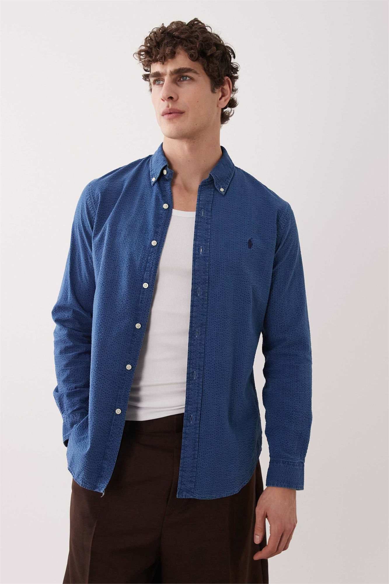 Рубашка с длинным рукавом из хлопка с сеерсакерным узором и логотипом