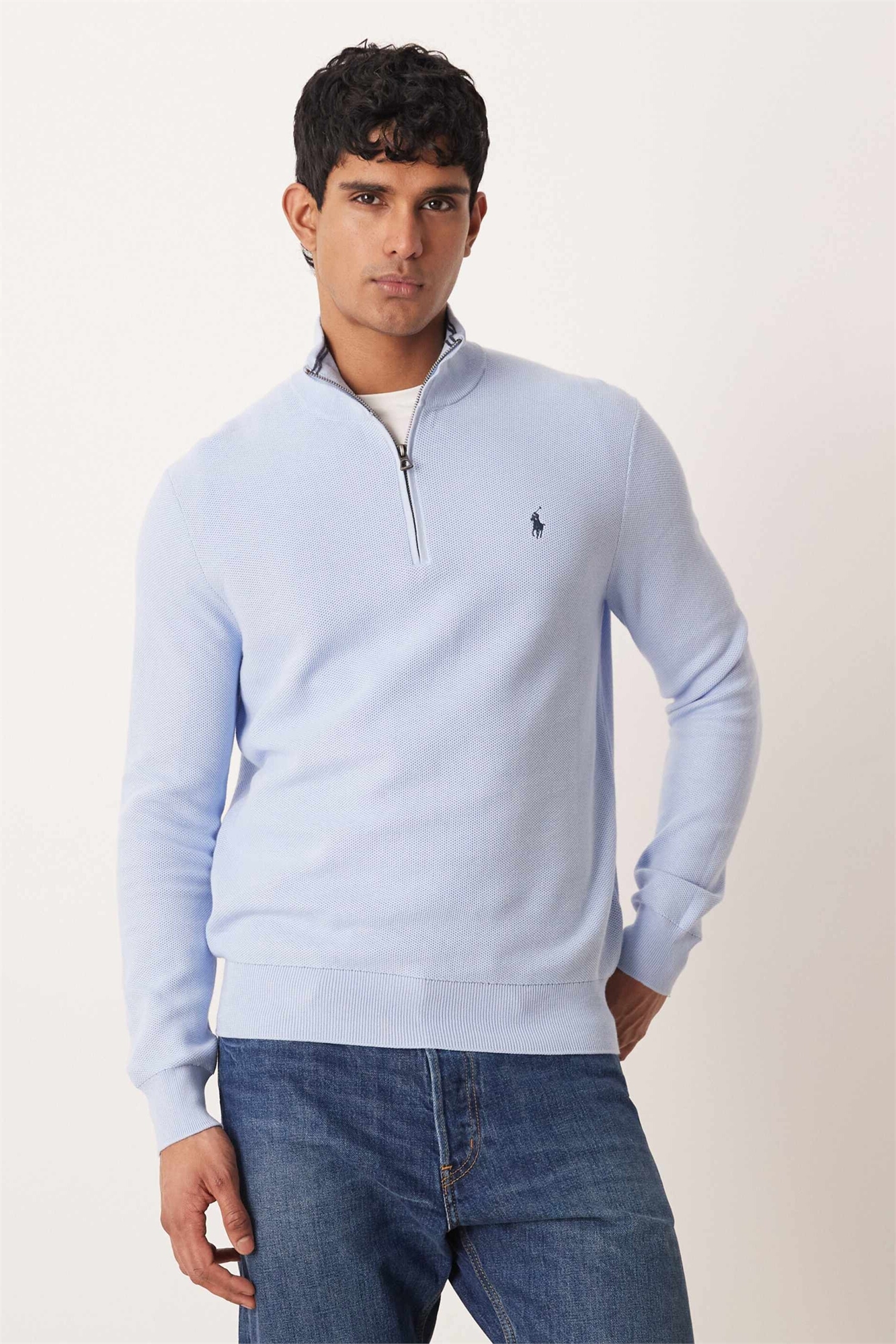 Свитер с логотипом и полузастежкой-молнией