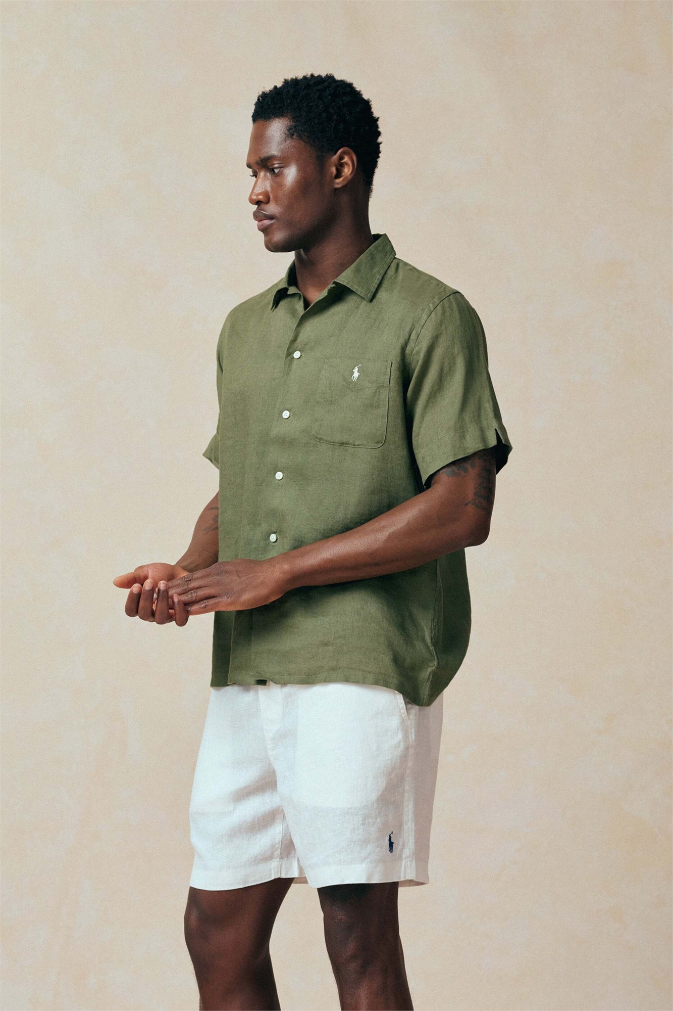 Шорты из льняной ткани, окрашенные в массе