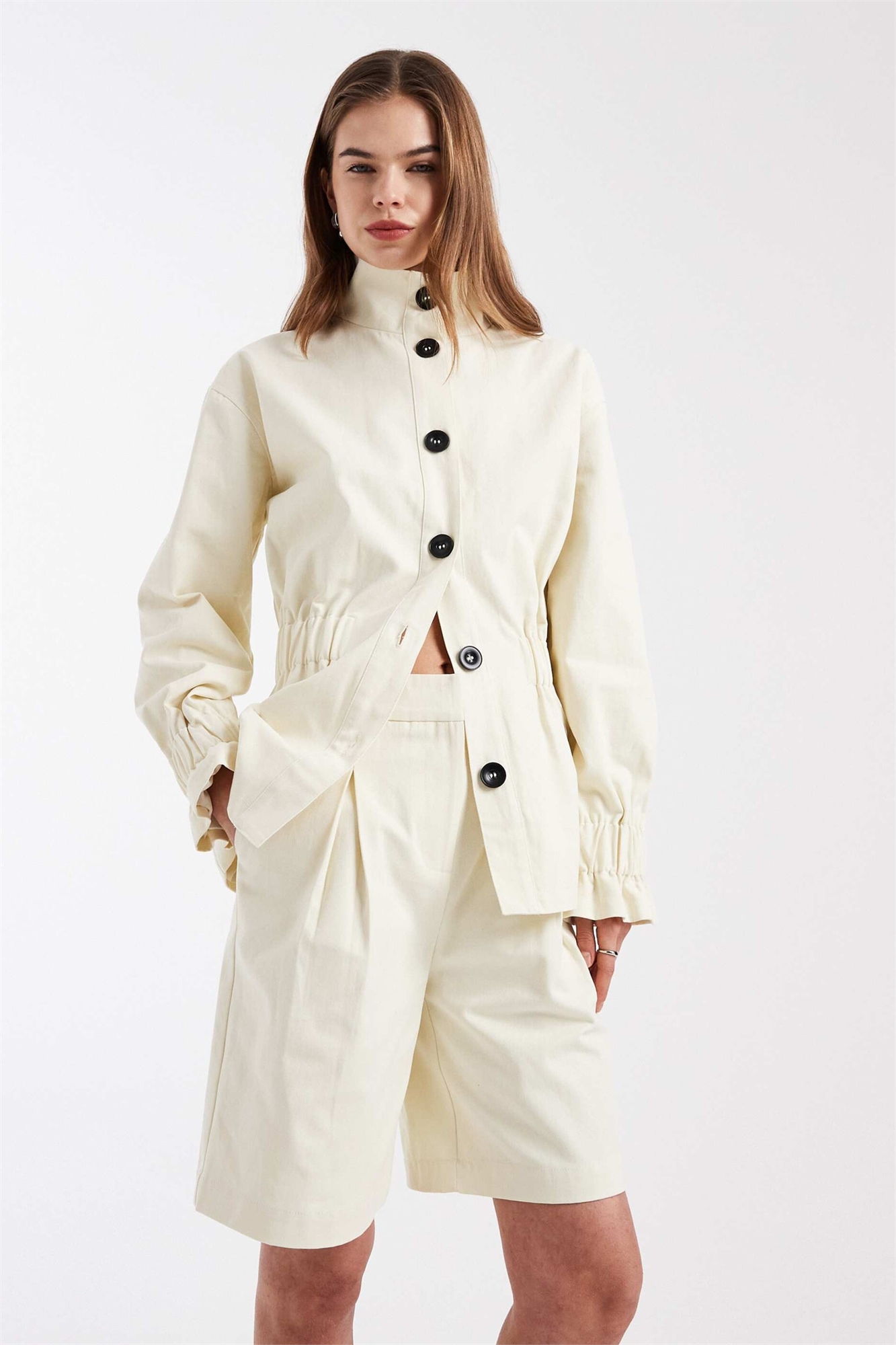 Шорты-лонглайн из хлопка с широкими складками co-ord
