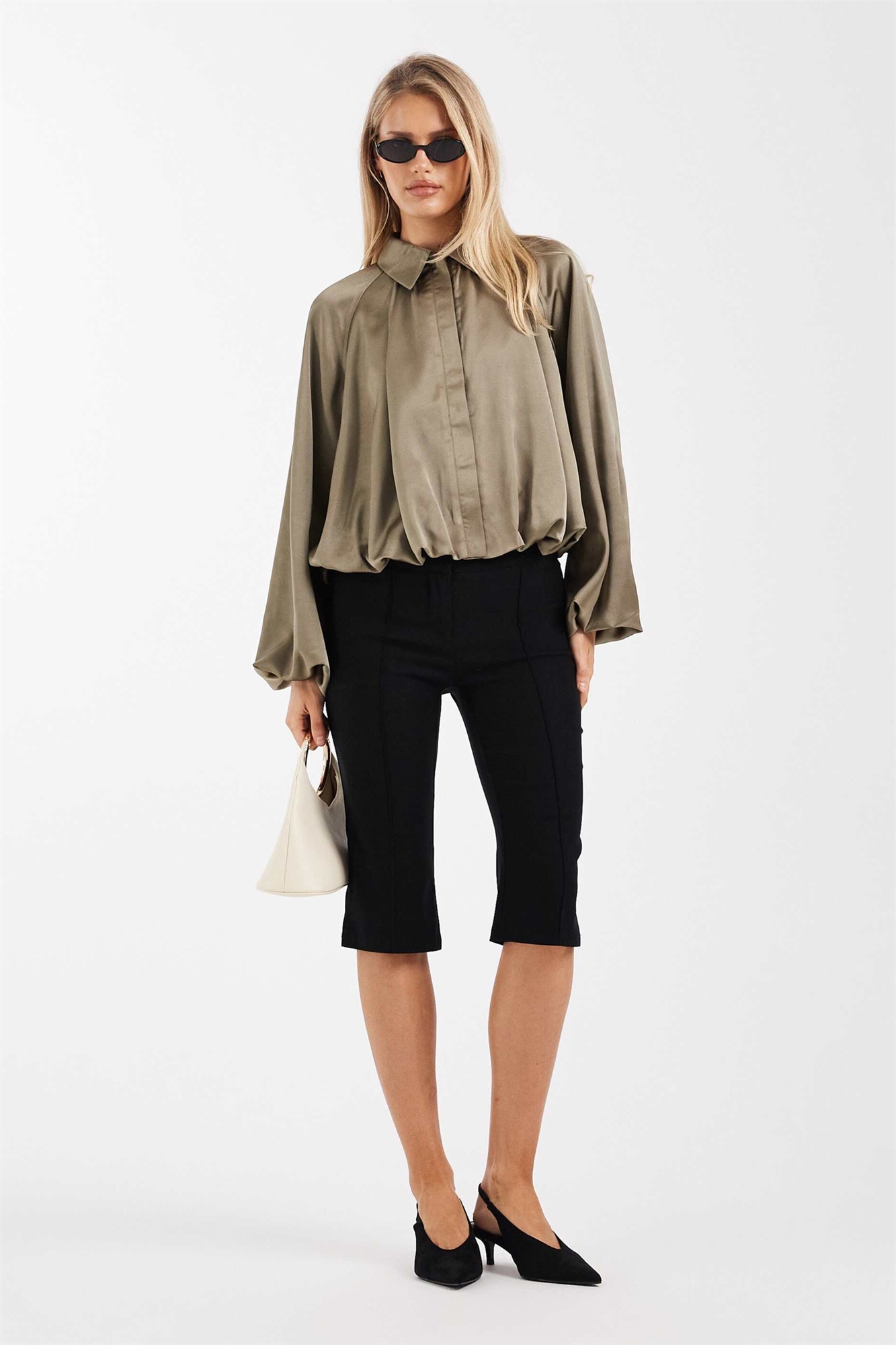 Брюки-капри из бенгалина с боковым разрезом спереди