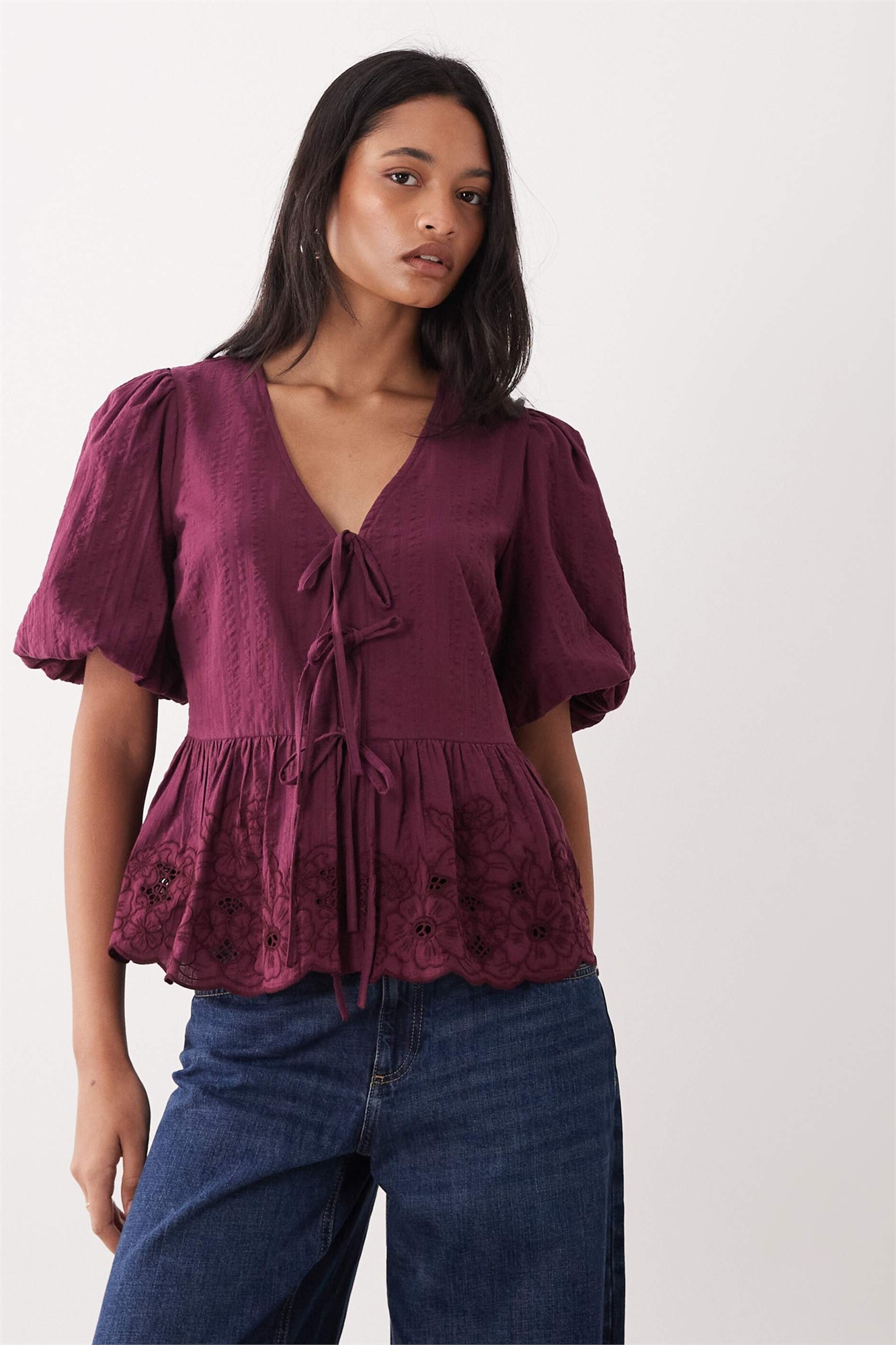 Блузка «Овен» с буффами и бантиком, украшенная вышивкой