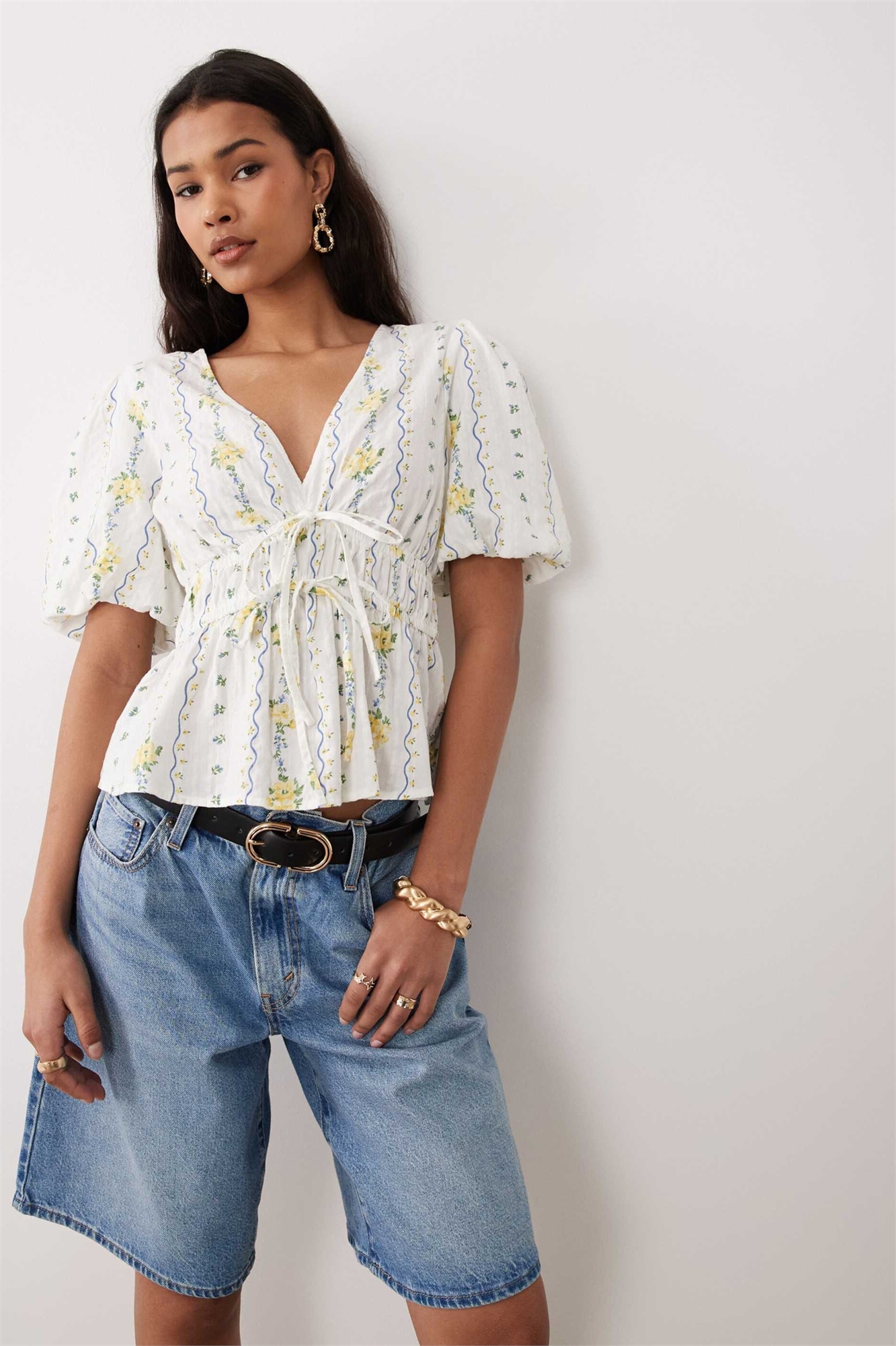 Топ с V-образным вырезом, буффами и завязками от Cordelia