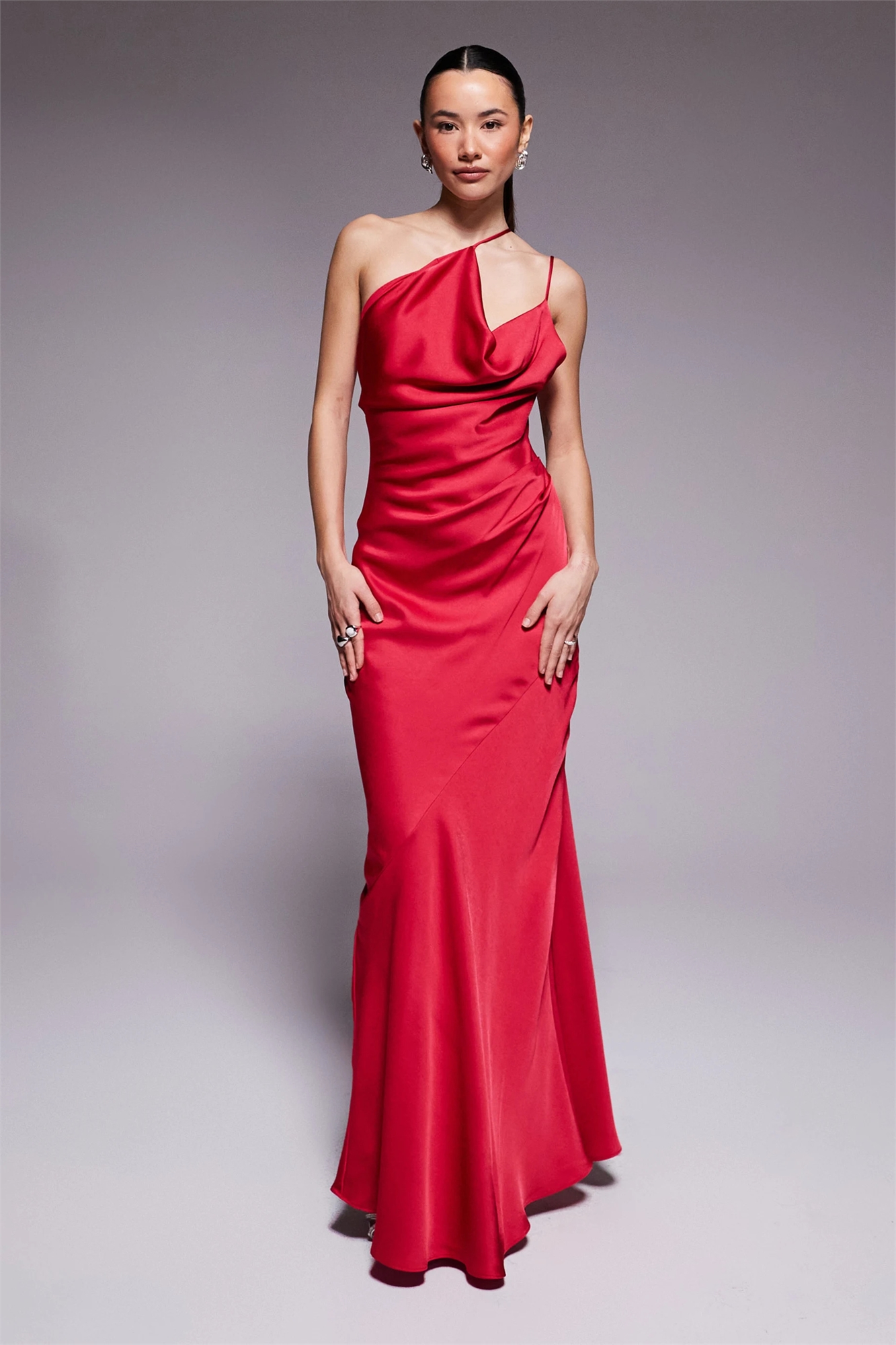 Макси-платье с одним плечом и воротником-капюшоном