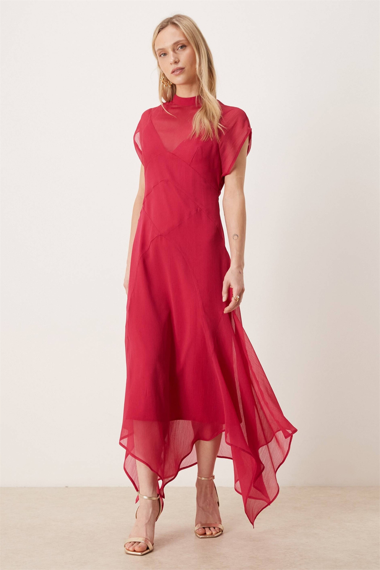 ASOS DESIGN Макси-платье из шифона с высоким воротником и асимметричным подолом, размер Petite