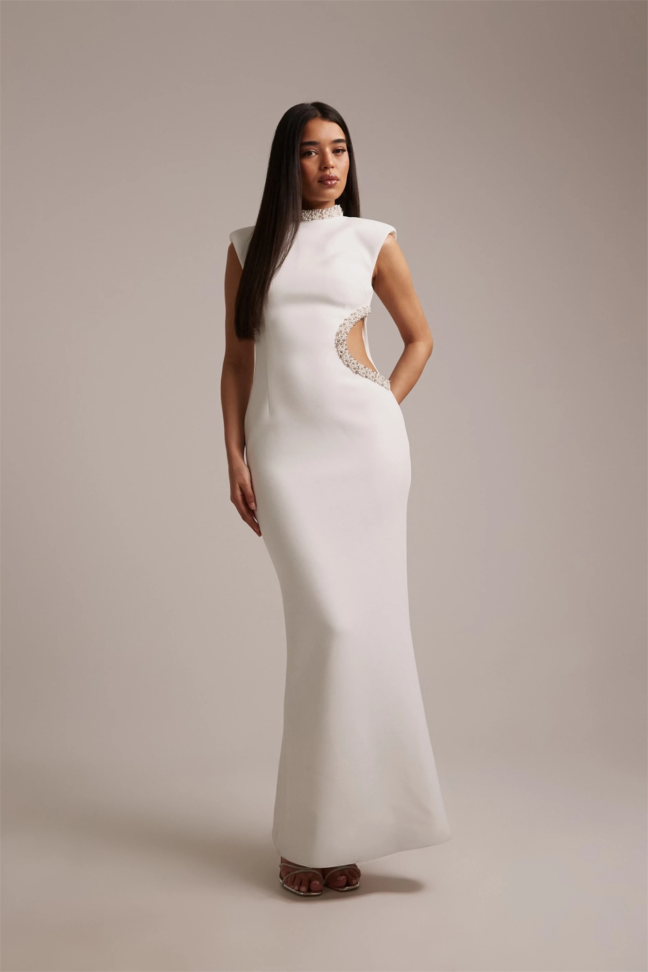 Кристальное свадебное макси-платье с высоким воротником, вырезами и стразами, с короткими рукавами