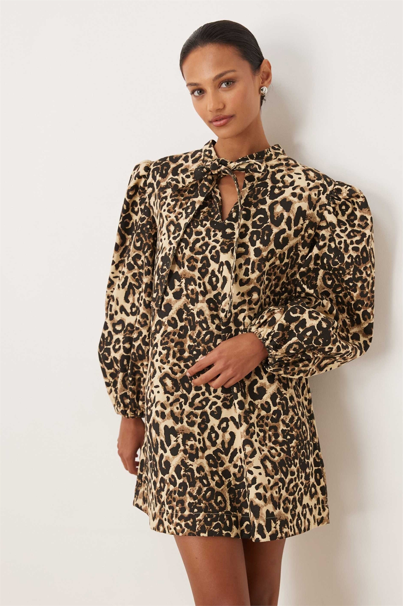 Мини-платье из чистого хлопкового денима с объемными рукавами от Mirage
