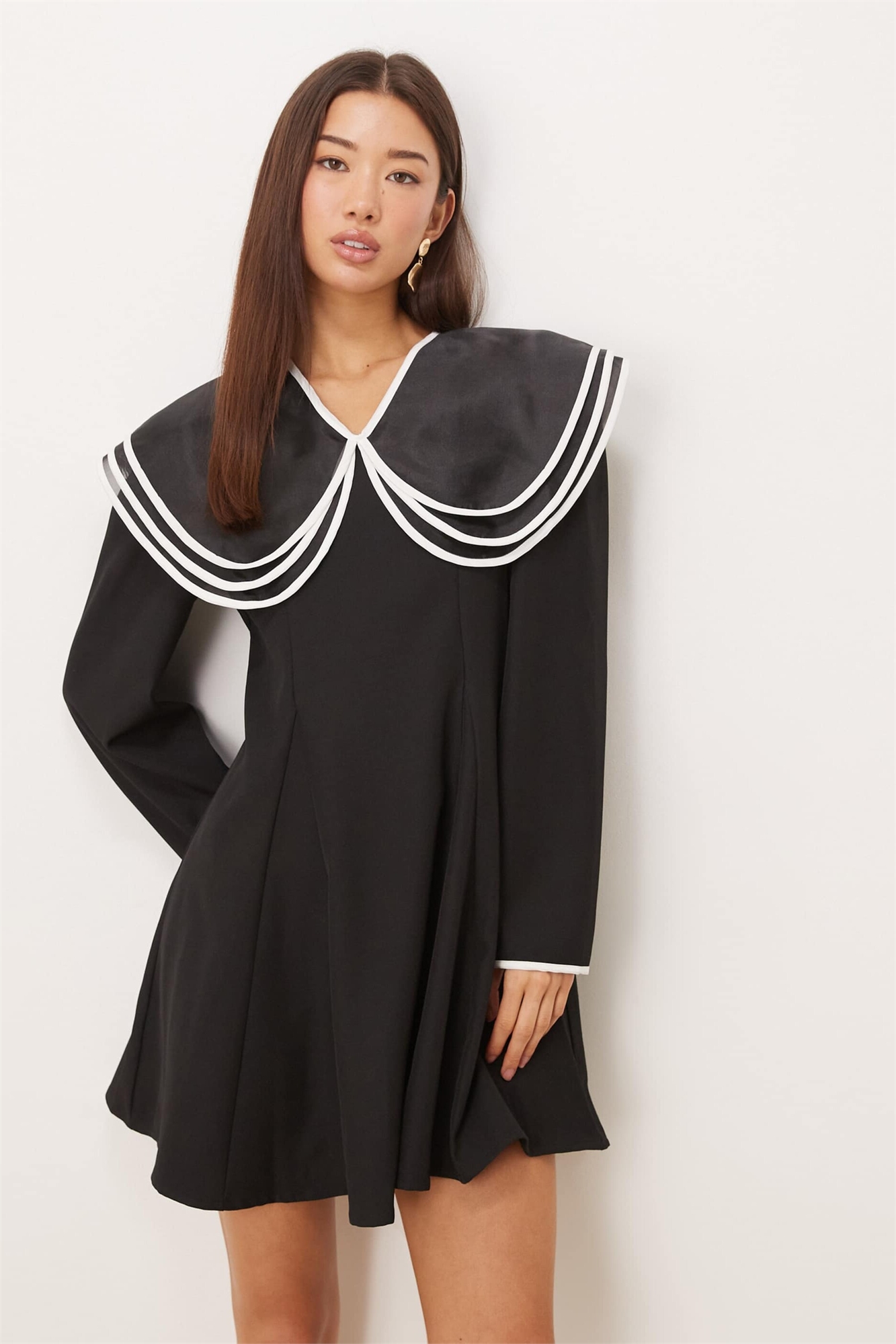 Мини-платье с контрастным многослойным воротником оверсайз