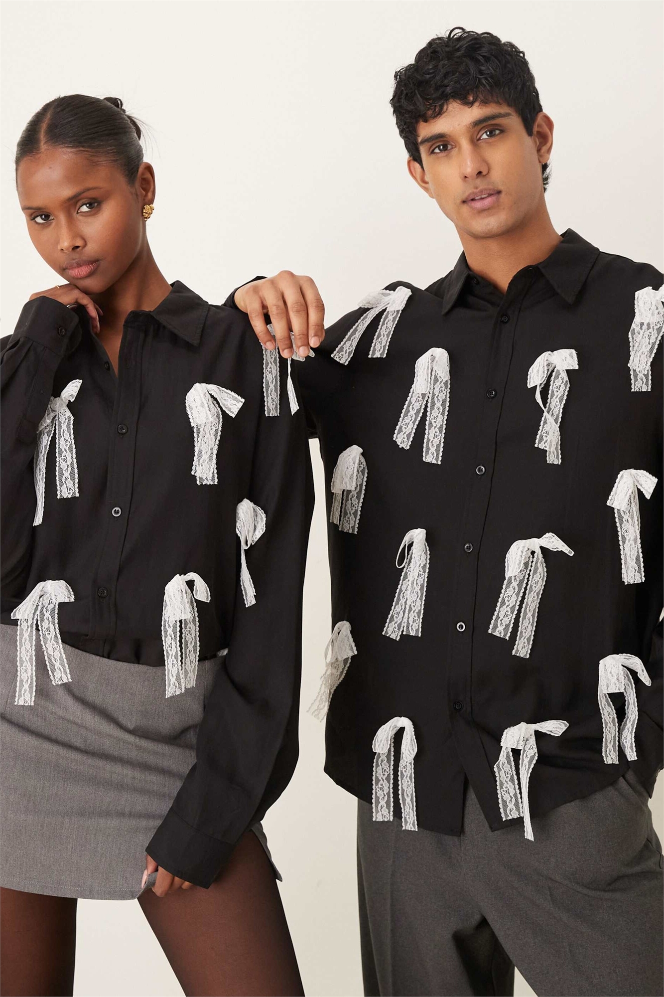 Рубашка унисекс с контрастным кружевным бантом