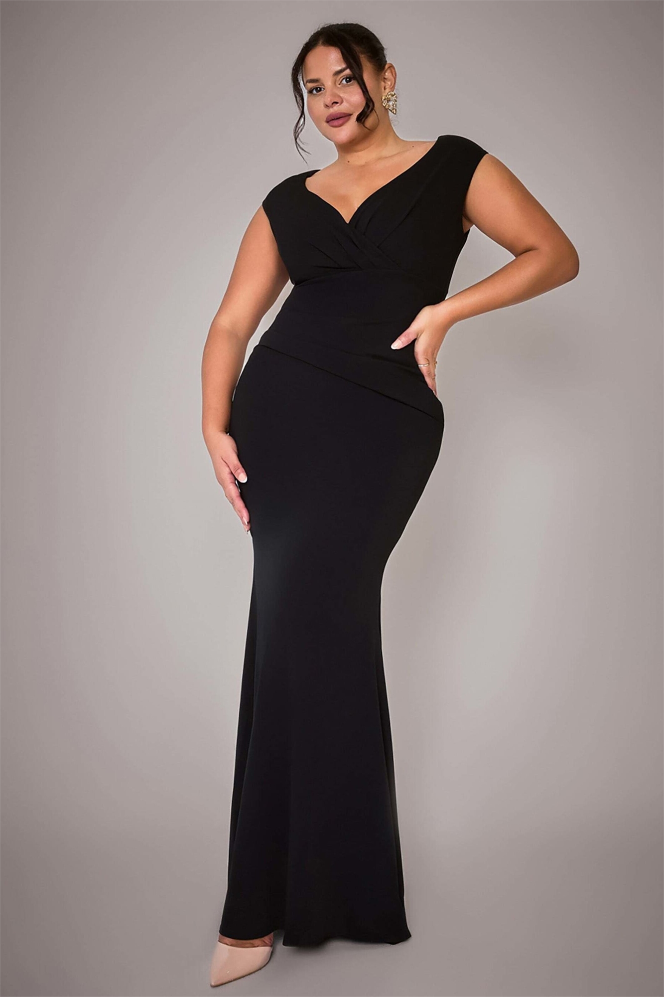 Плюс-размерное макси-платье с плиссировкой и вырезом «бардо»