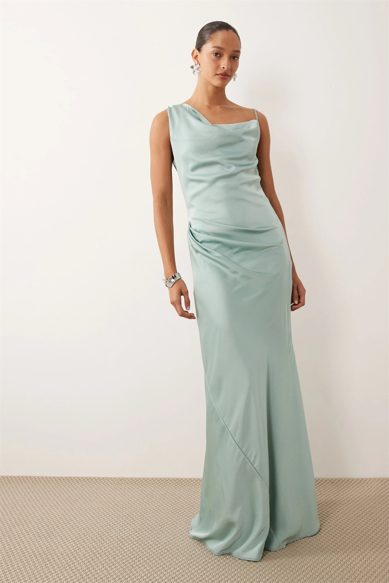Атласное макси-платье с одним плечом для подружки невесты