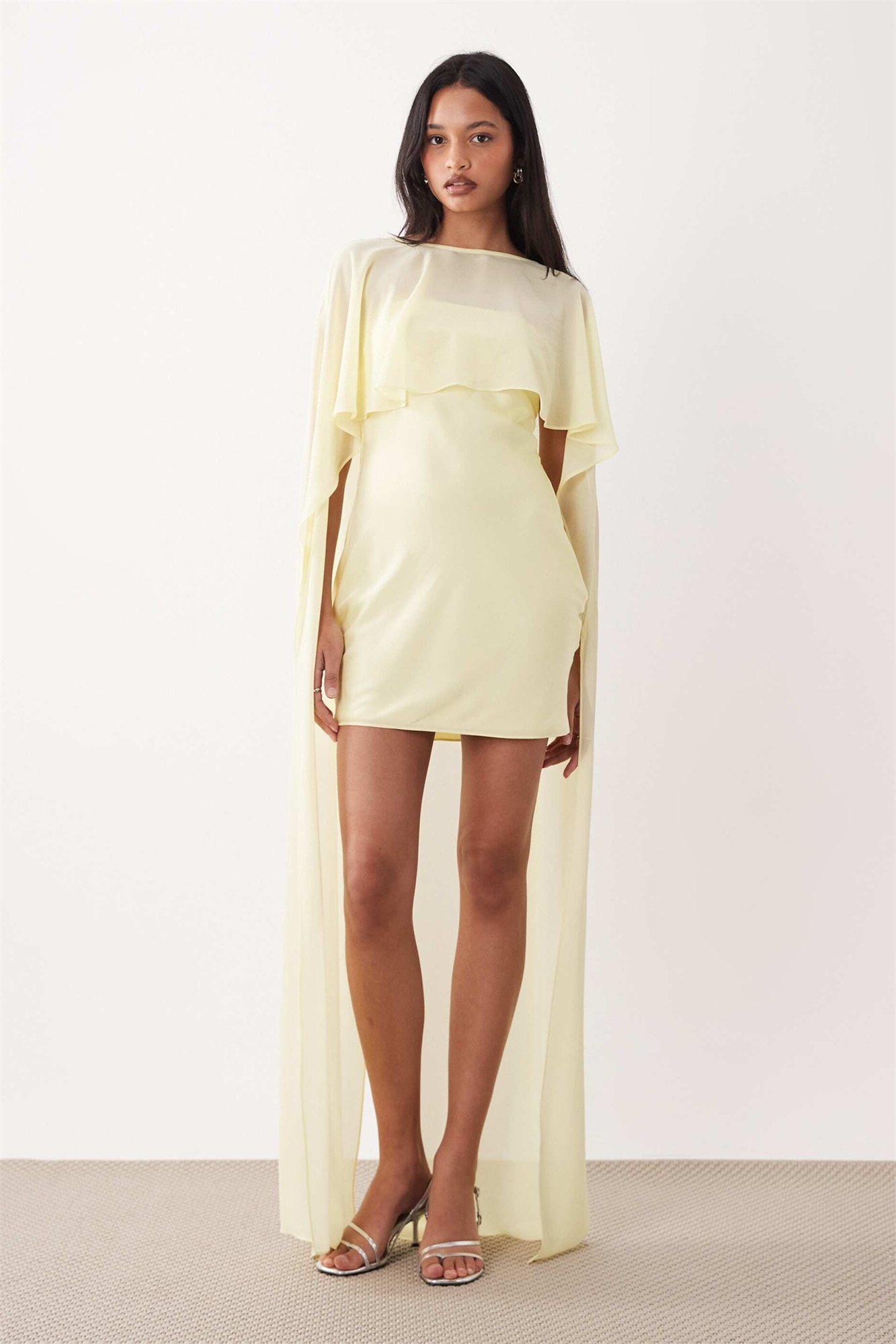 Атласное мини-платье с сетчатой накидкой и юбкой