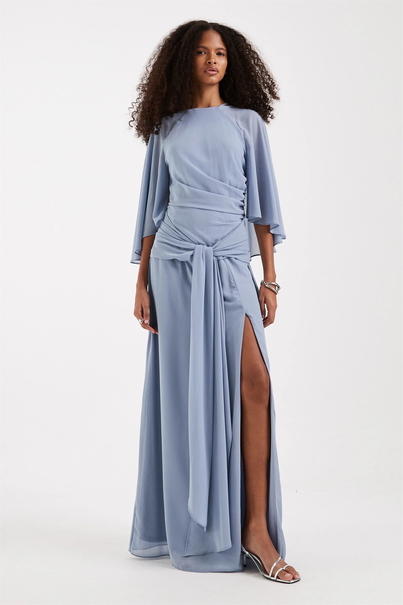 Макси-платье из шифона с капюшоном и завязками спереди для подружки невесты