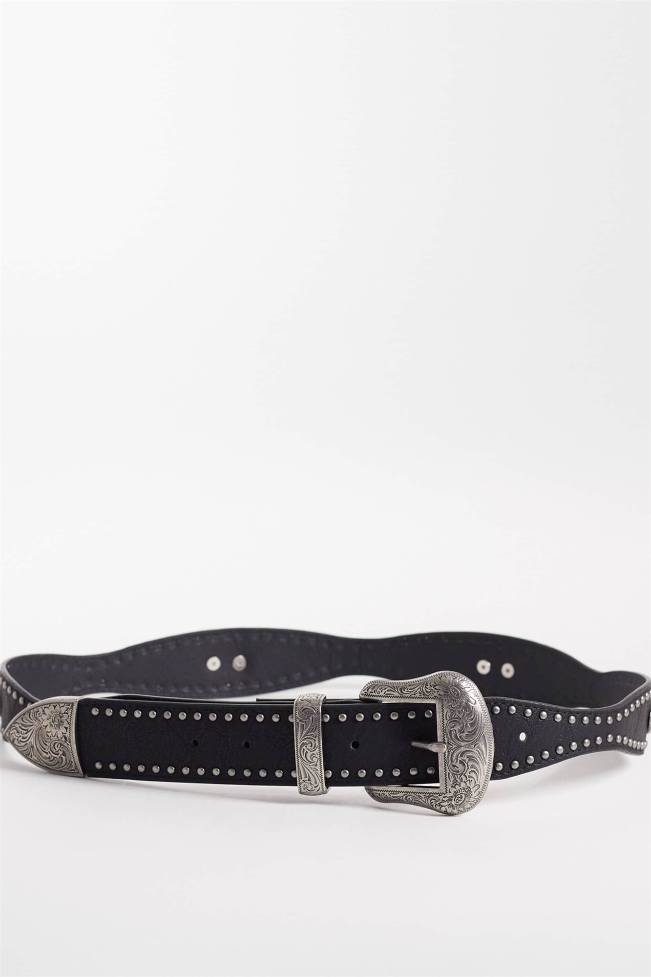 Ремень в стиле вестерн из искусственной кожи с заклепками и серебряной пряжкой с тисненым узором
