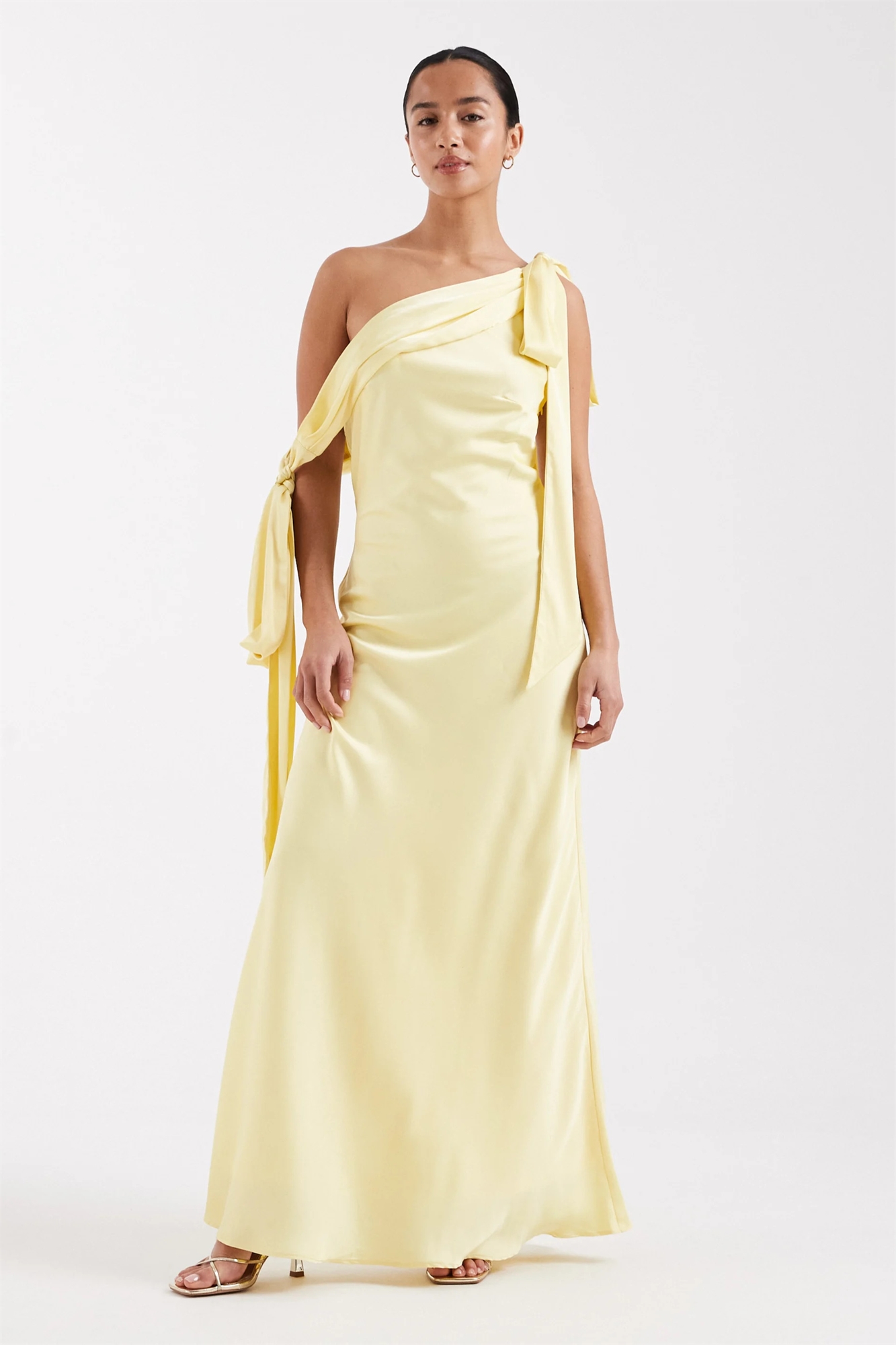 Атласное макси-платье с открытыми плечами для подружек невесты