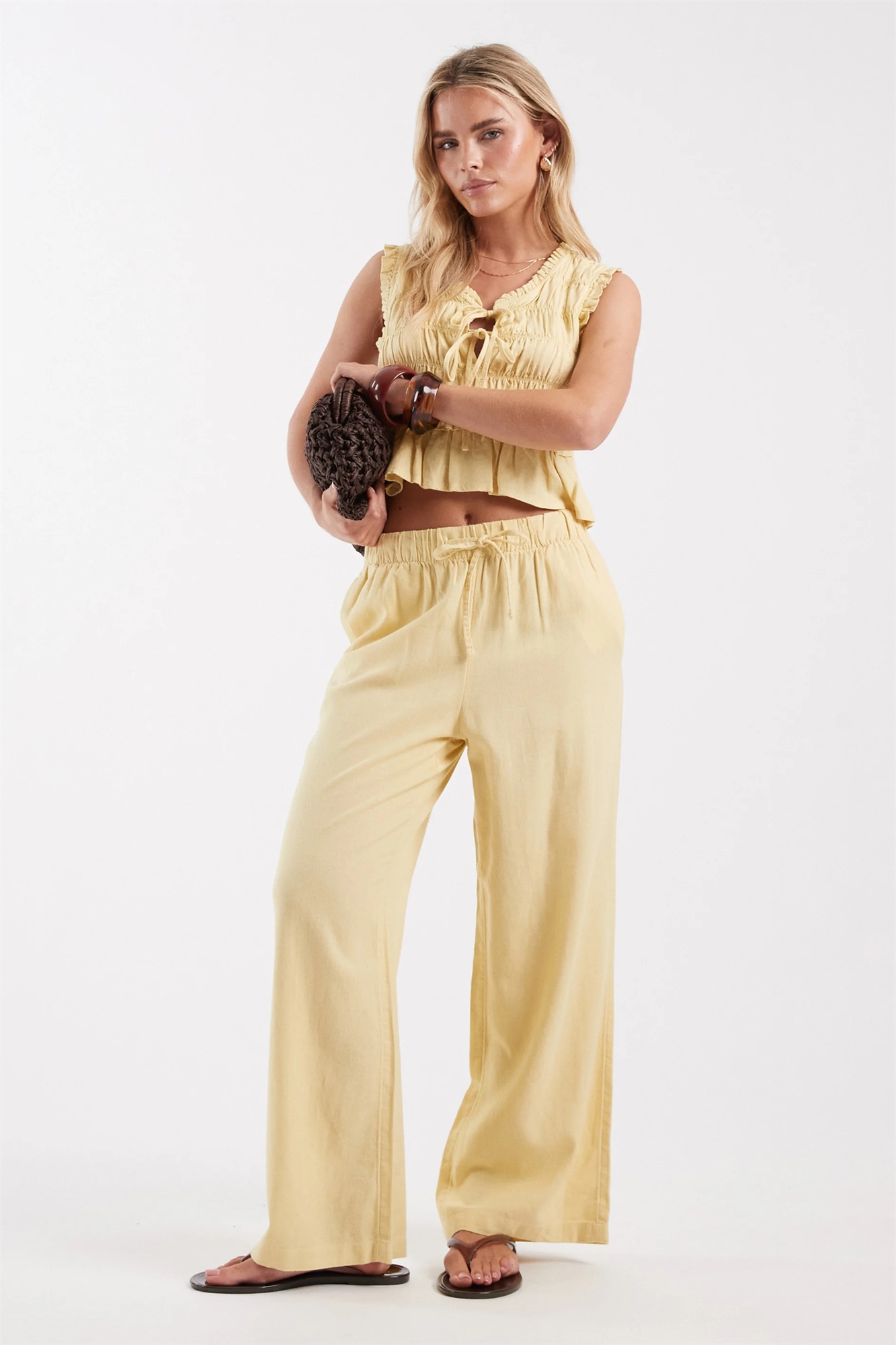 Брюки из смешанного льна, надеваемые через голову co-ord
