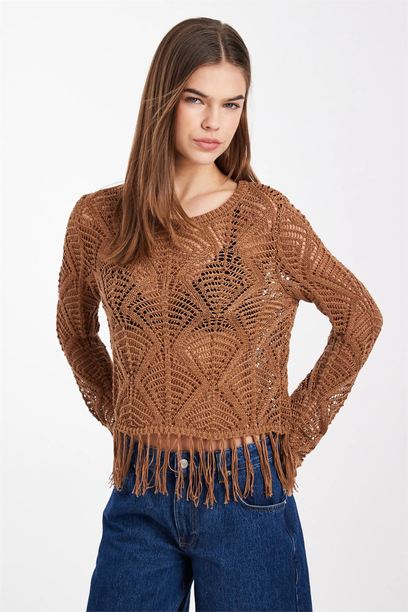Вязаный топ в стиле бохо с бахромой