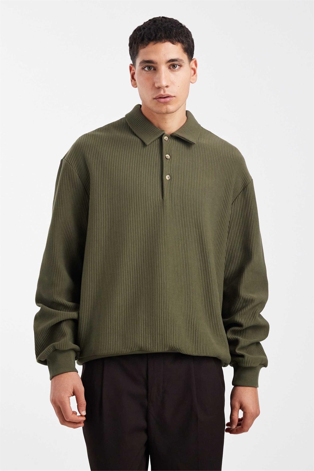 Свободная толстовка с ребристой отделкой и воротником-поло
