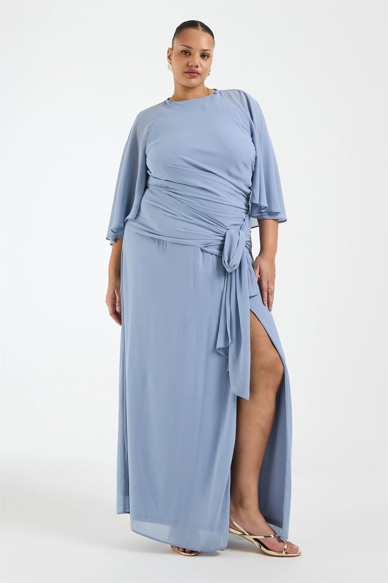 Макси-платье для подружки невесты с капюшоном из шифона и завязками спереди