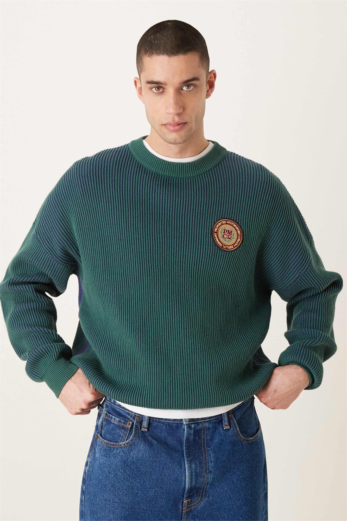 Свитер с круглым вырезом из трикотажа