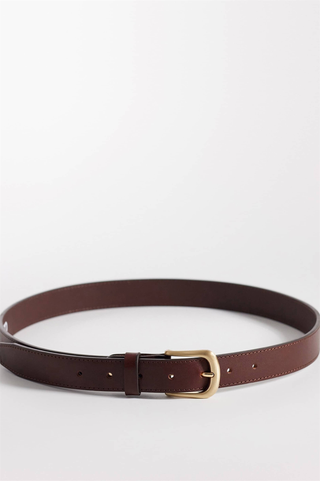 Элегантный кожаный ремень с одной заклепкой и золотой пряжкой с закруглёнными краями