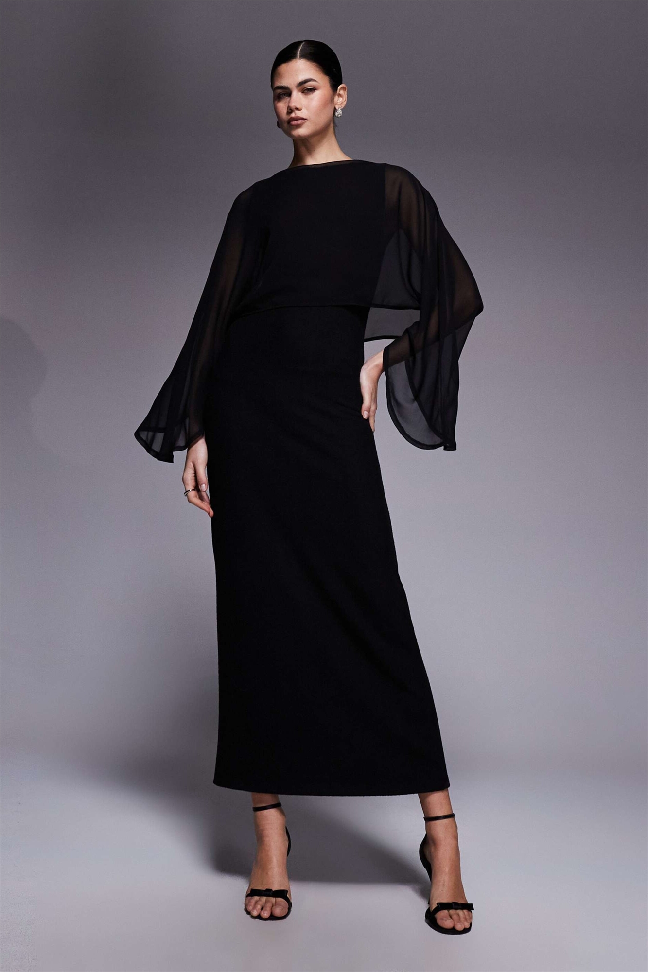 Макси-платье с асимметричным рукавом и шифоновым накидкой