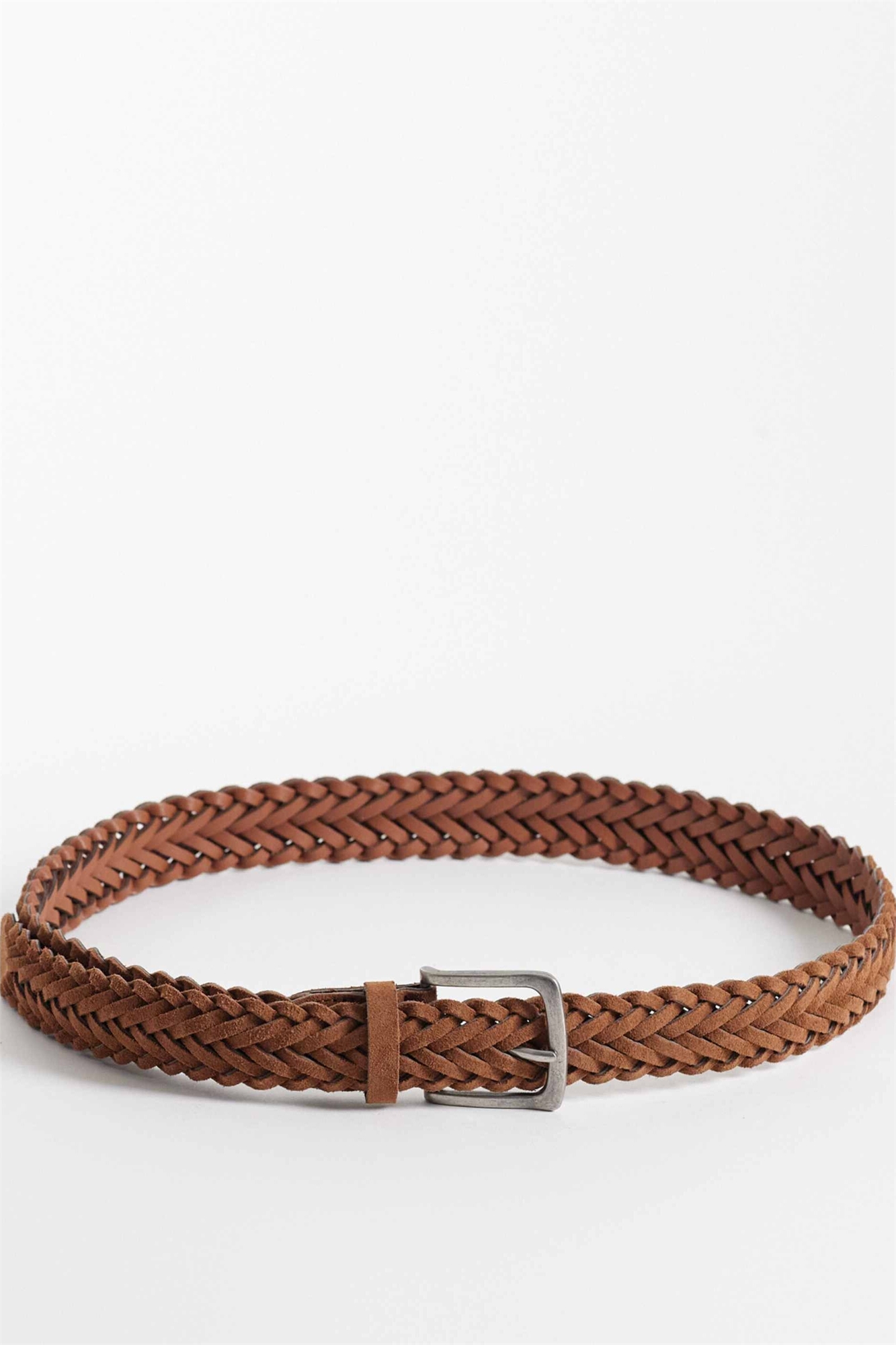 Ремень из натуральной замши с плетением и серебряной пряжкой
