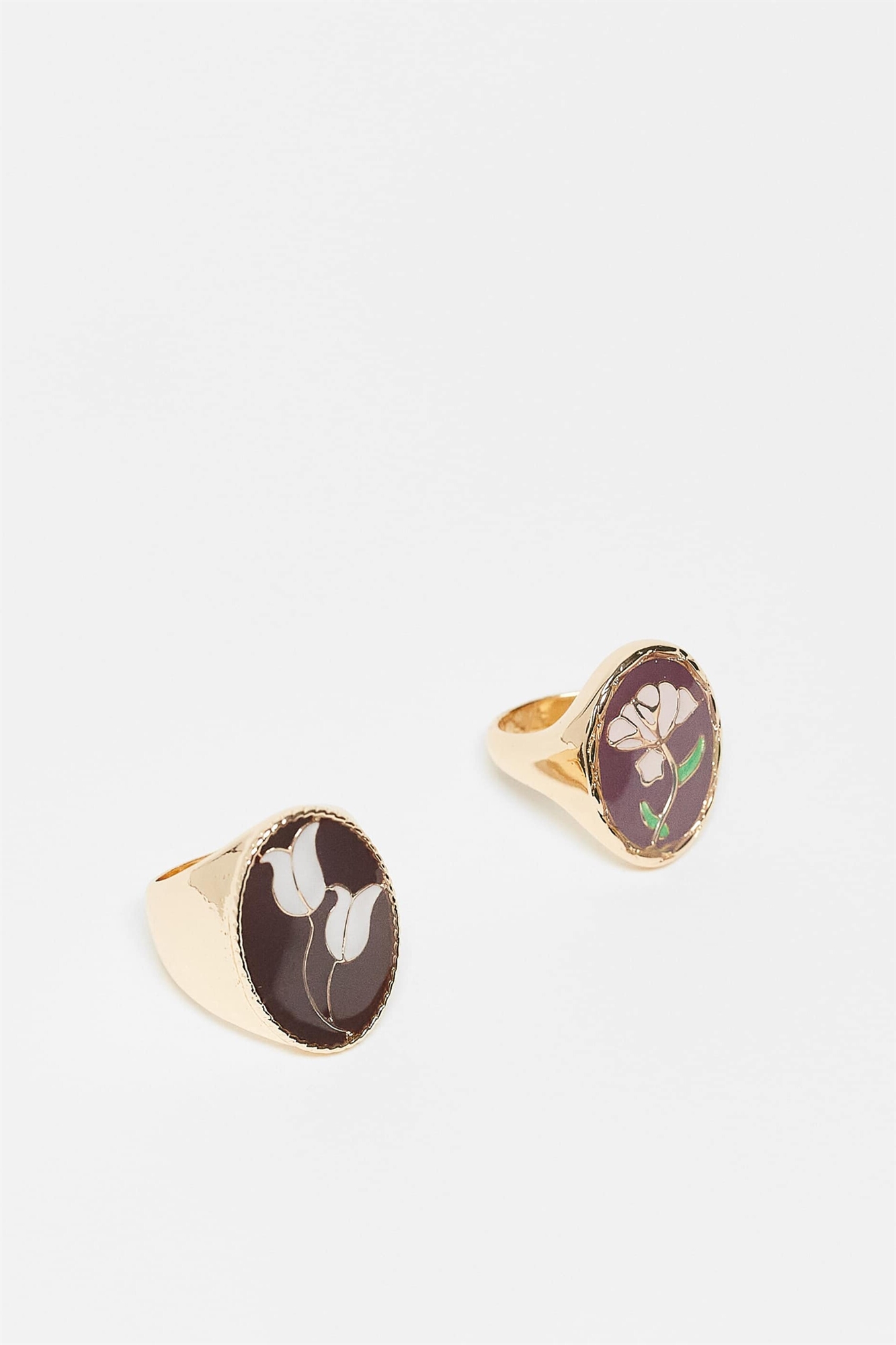Набор из 2 эмалевых колец с цветочным узором