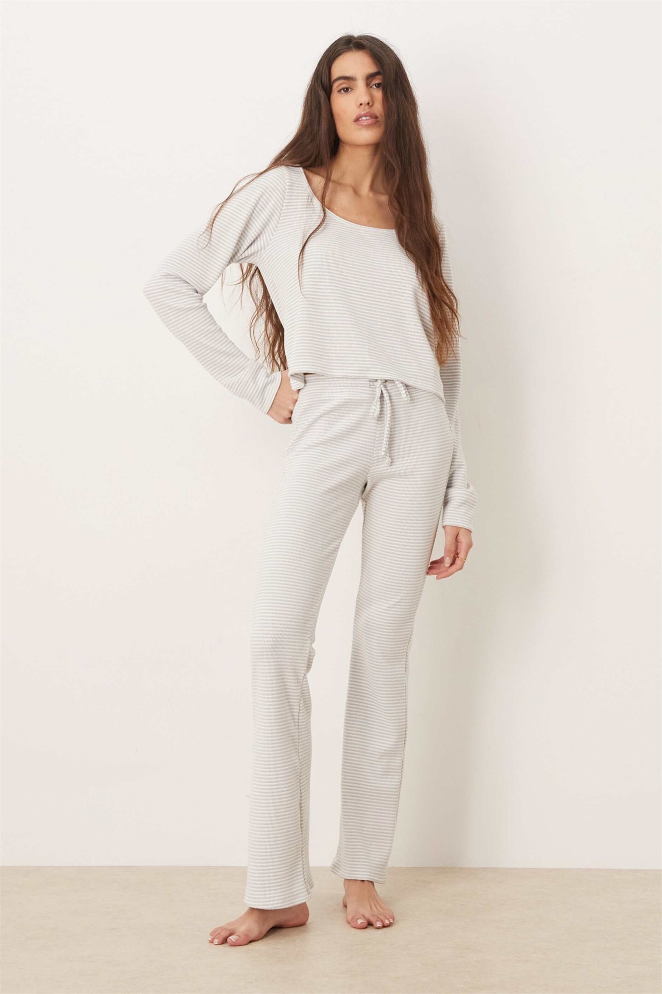 Брюки Gilly Hicks средней посадки с расклешенными брючинами из уютной ткани с вафельной текстурой co-ord