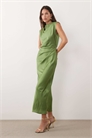 Платье средней длины с атласным лифом с высоким воротником и плиссировкой