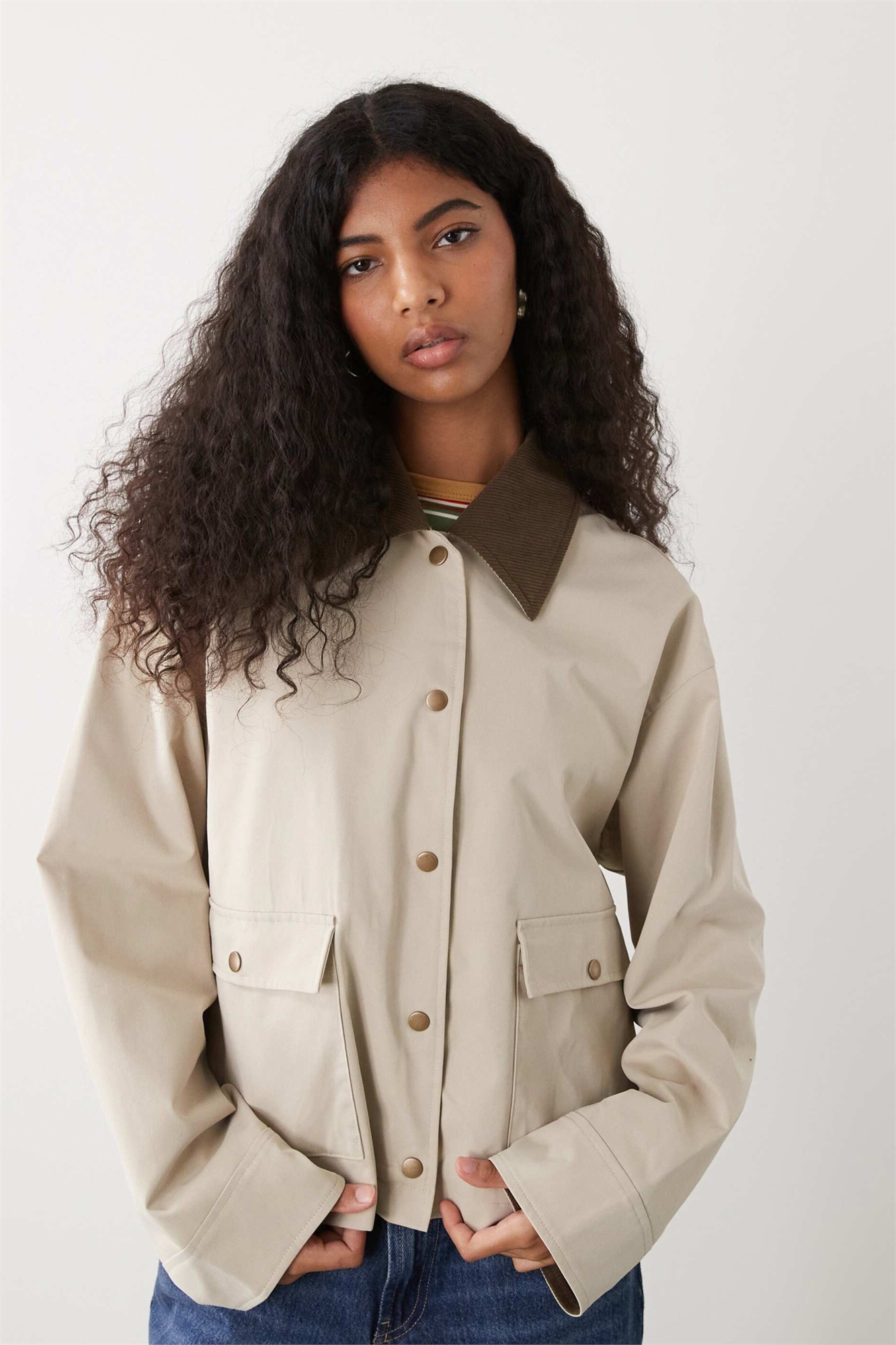 Куртка-барн с контрастным воротником из легкой ткани