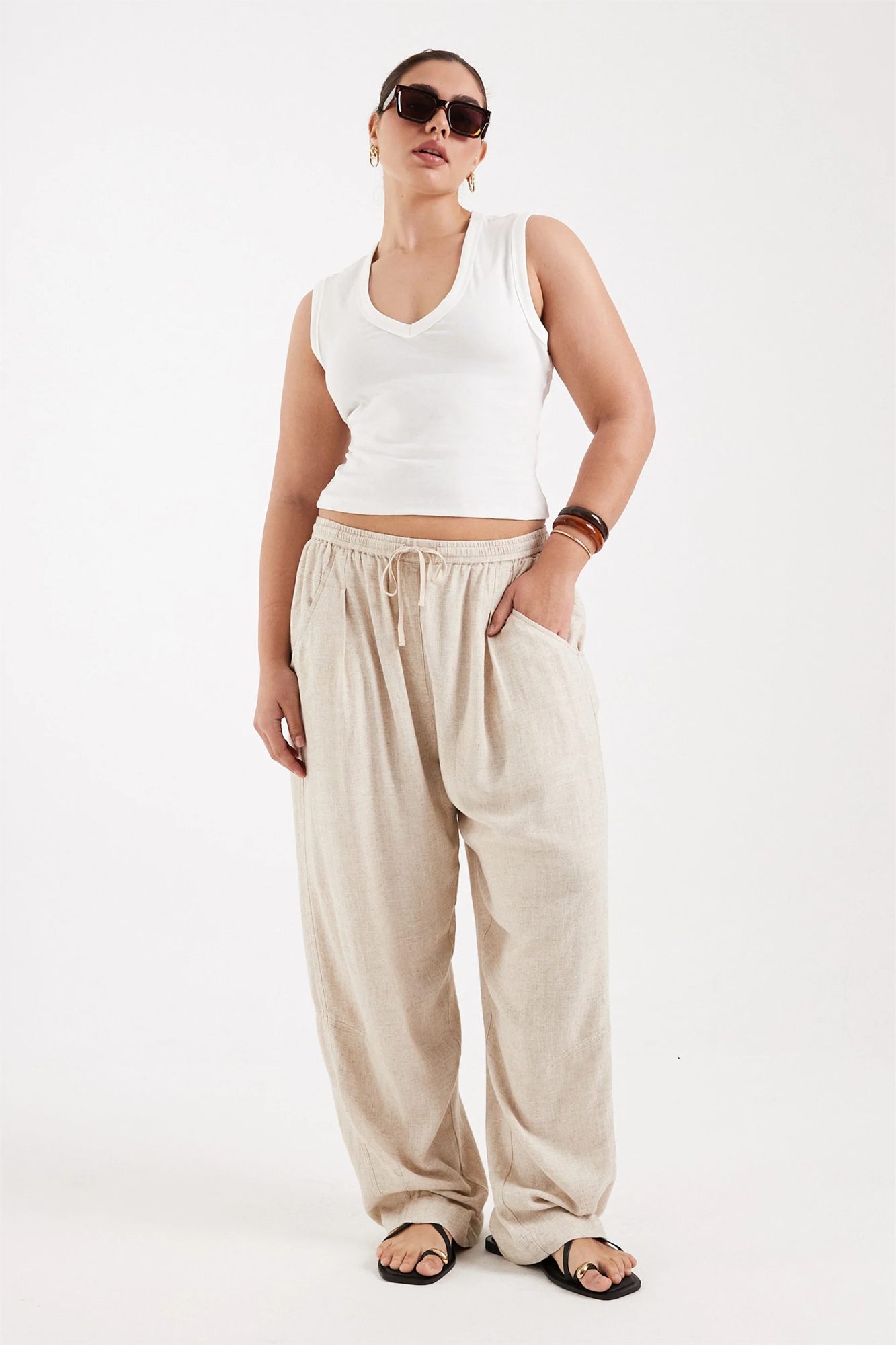ASOS DESIGN Curve — брюки-универсалы из льняного твила с низкой посадкой