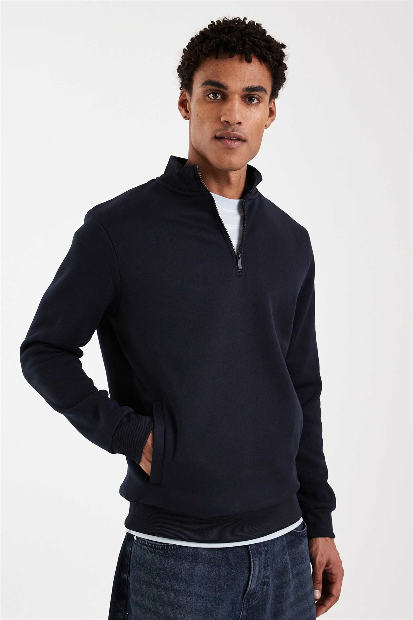 Свитшот с воротником-воронкой и четвертью молнии