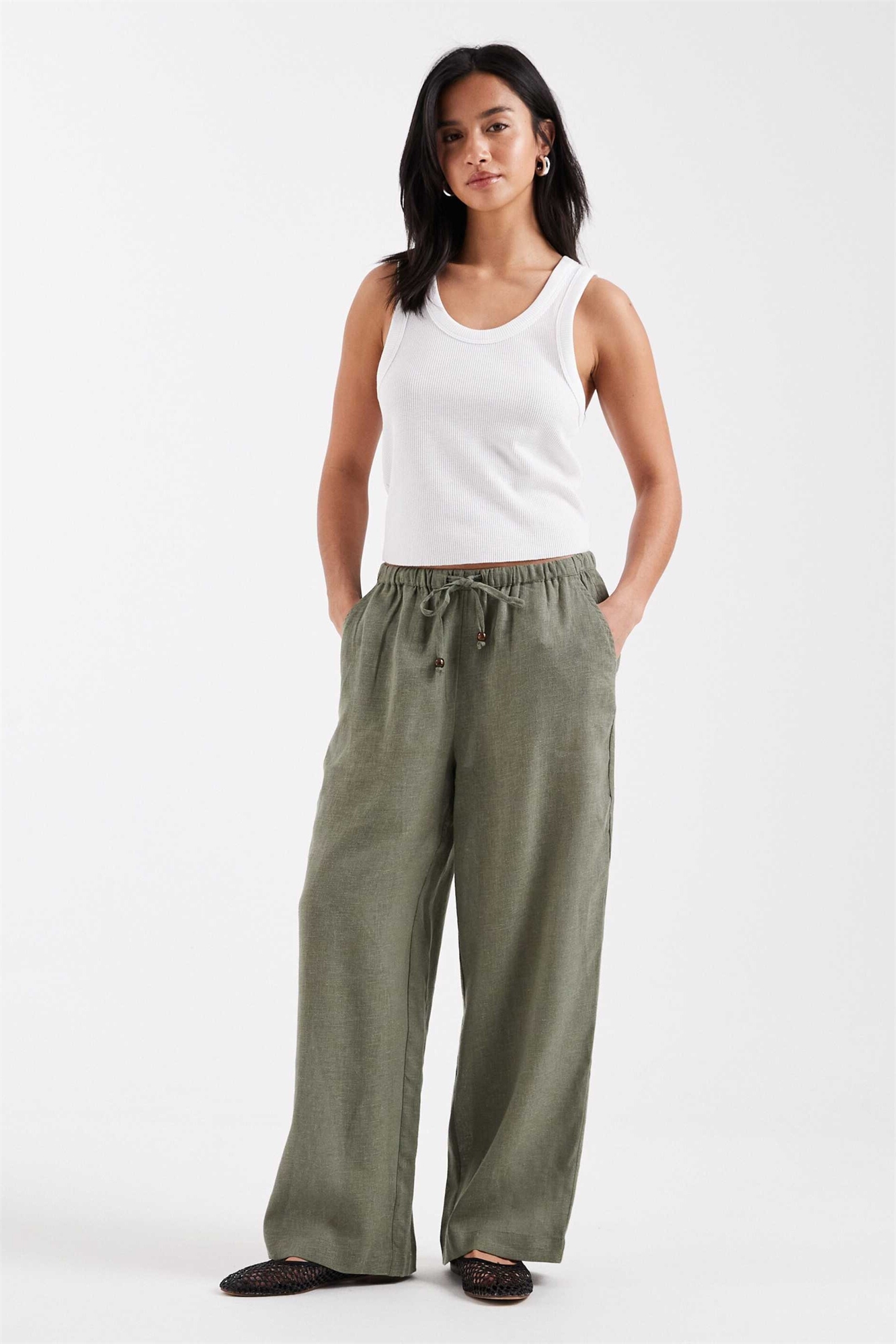 Брюки с широкими брючинами из смешанного льна