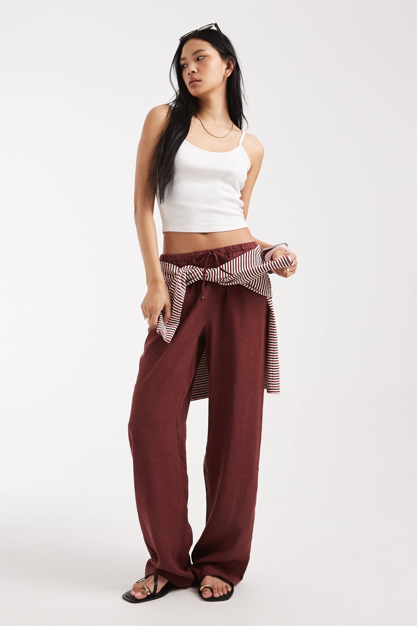 Брюки с широкими брючинами из смешанного льна