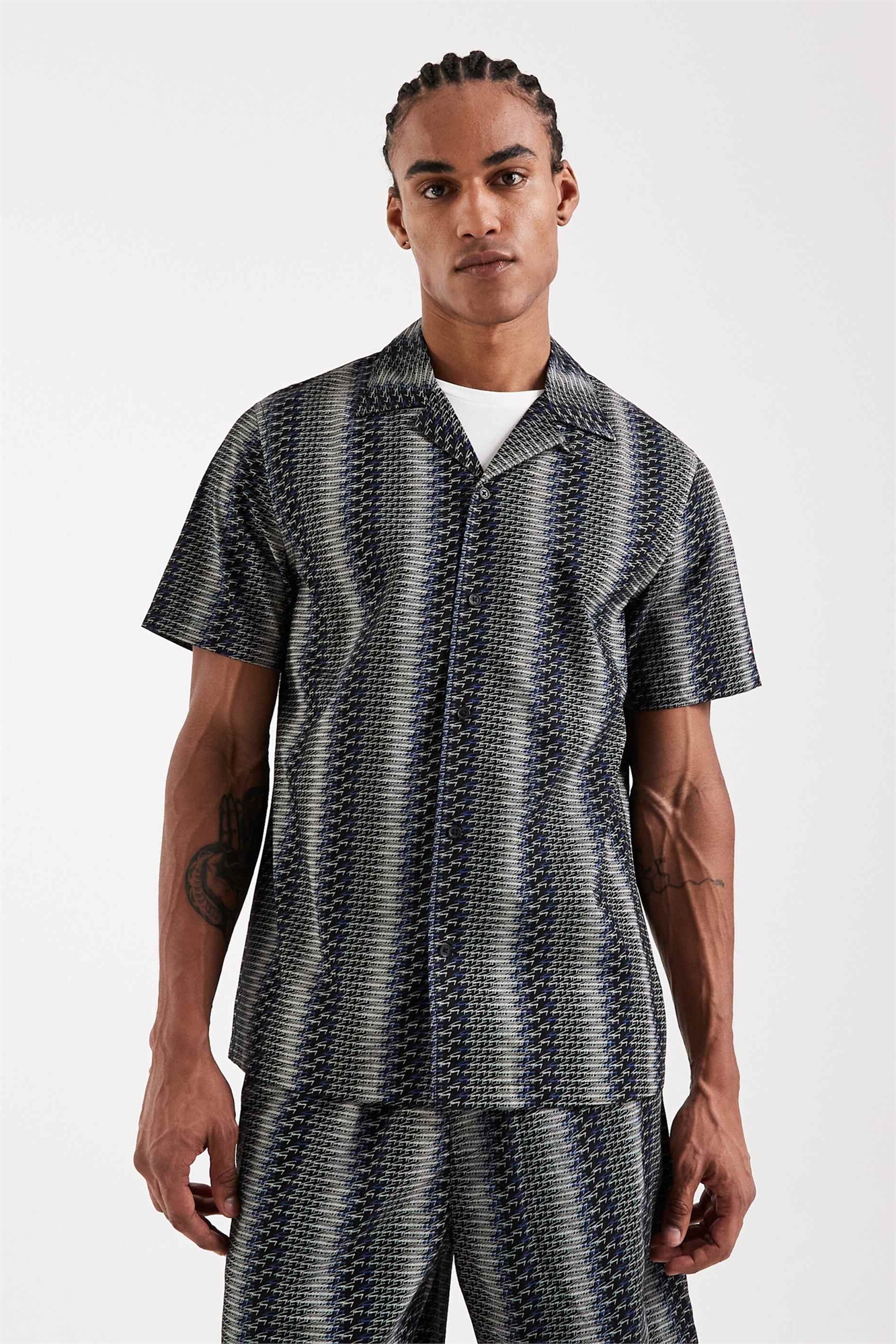 Рубашка с воротником-стойкой и короткими рукавами co-ord