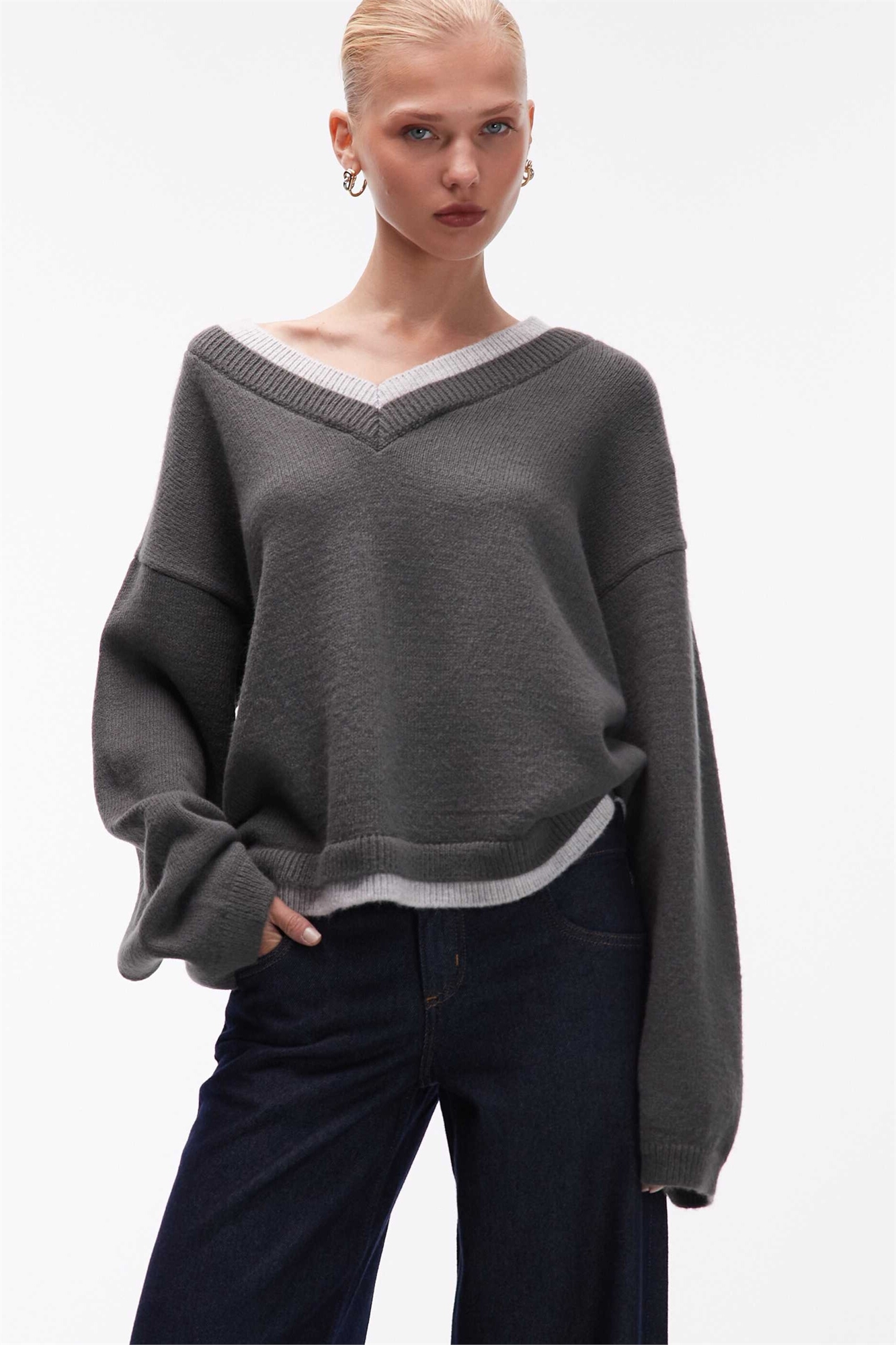 Свитер с V-образным вырезом и двойным слоем