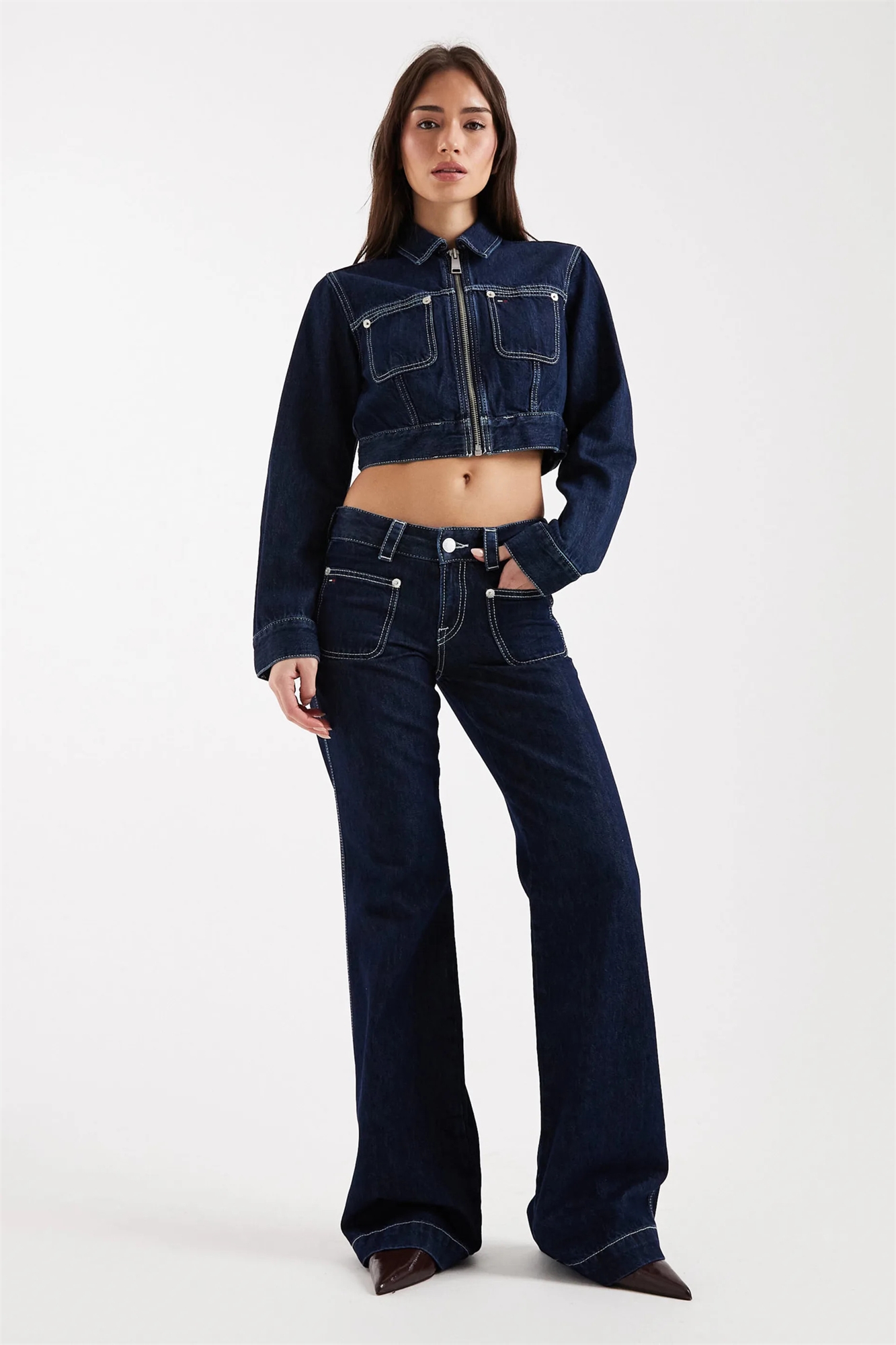 Джинсы с низкой посадкой и расклешенными брючинами co-ord