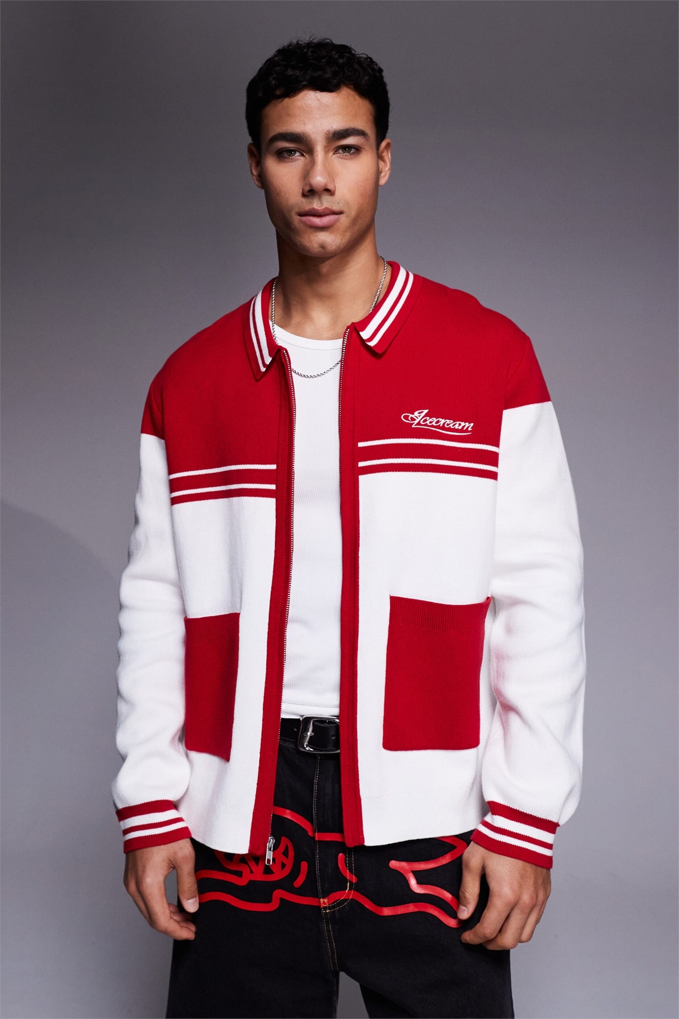 Вязаный кардиган с застежкой-молнией и контрастными вставками