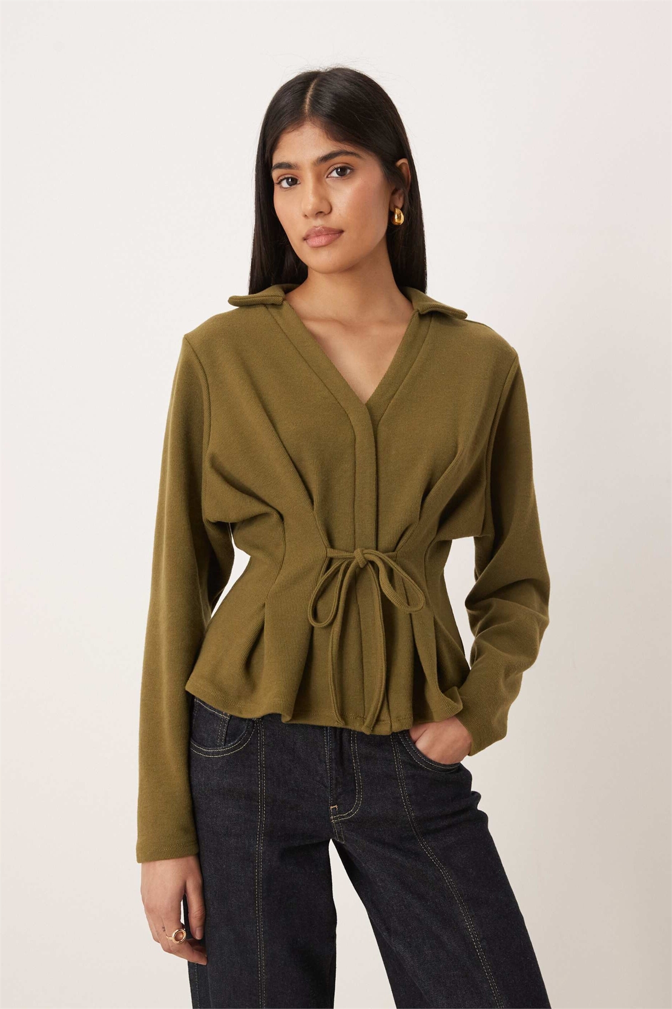 Мягкая рубашка-поло с завязками и зауженным силуэтом и длинными рукавами