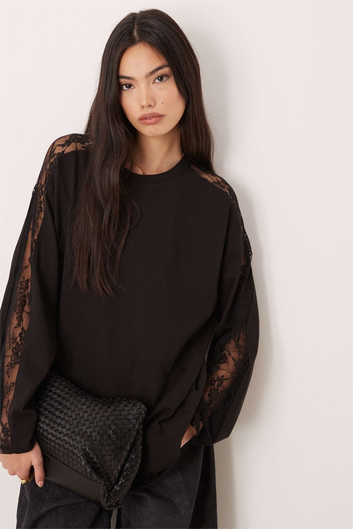 Футболка с кружевной вставкой и длинными рукавами