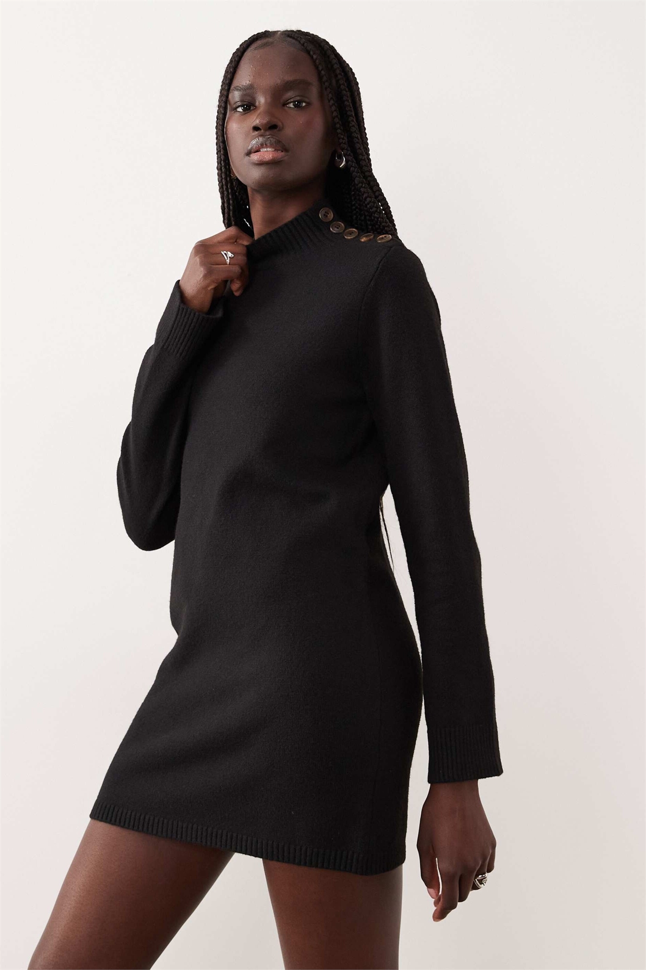 Мини-платье из трикотажа с длинными рукавами и декоративными пуговицами