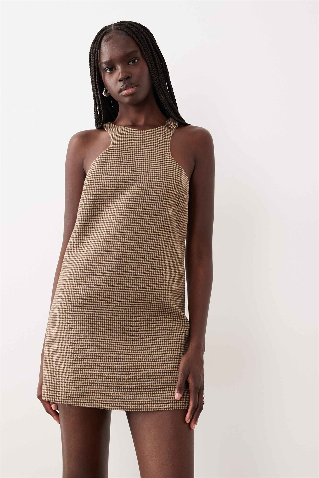 Приталенное мини-платье без рукавов